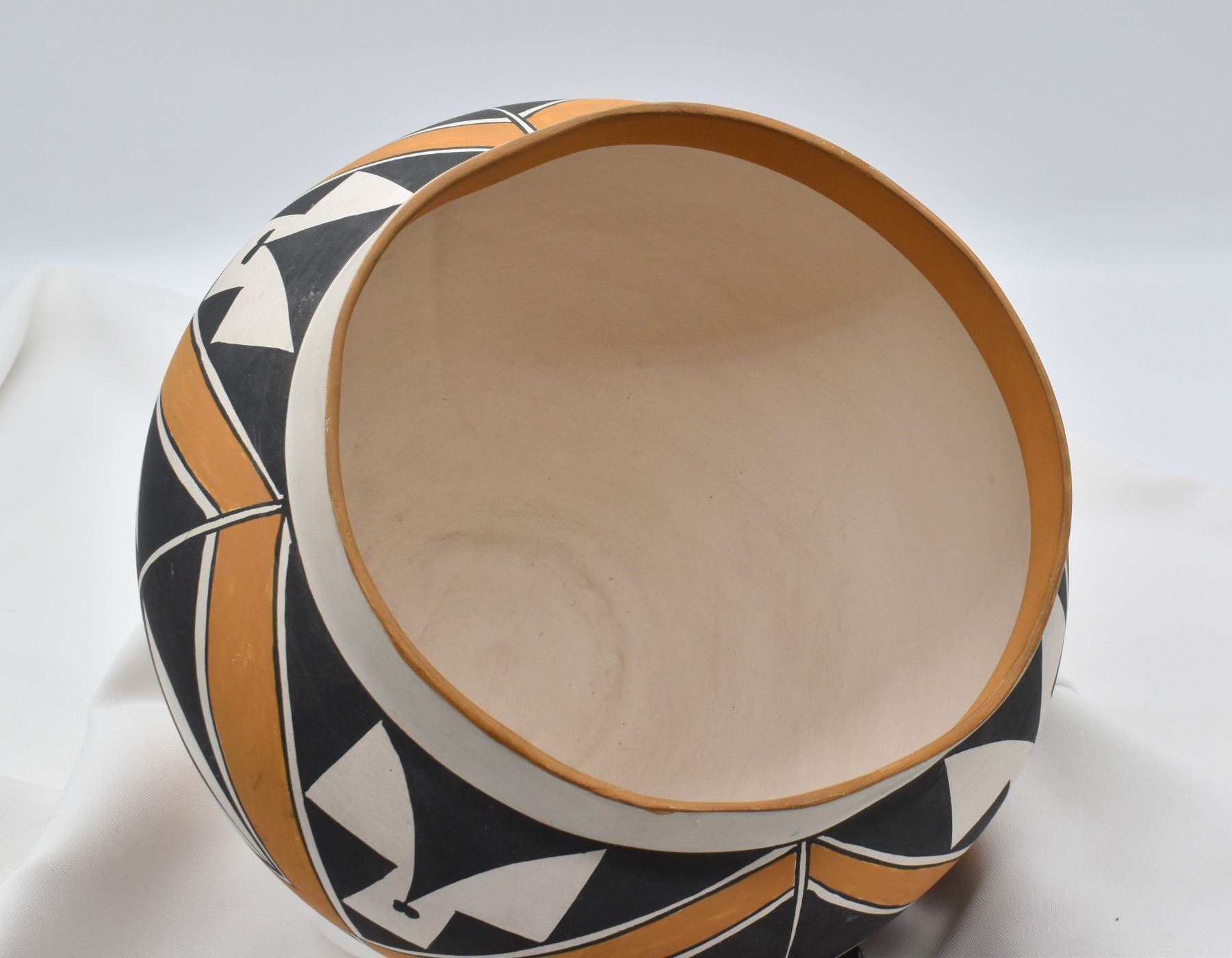 Large Native American Acoma Hand Painted Pottery Olla by Lolita Concho, measures 8.5'' x 11''D and is signed on the bottom, ca. 1975, FYI: ''Lolita Concho was born circa 1910 at Acoma Pueblo. She spent her life at the pueblo making pottery for collectors and museums. She was an outstanding potter and one of the few who could make large jars. She was commissioned to make large jars like the ones in R. C. Gorman's lithographs ''Water Carrier'' and ''Acoma'' in the early 1980's. The results were breathtaking. She was a prize-winning potter who found time to teach the techniques of pottery making to her daughter-in-law, Dorothy Torivio.''