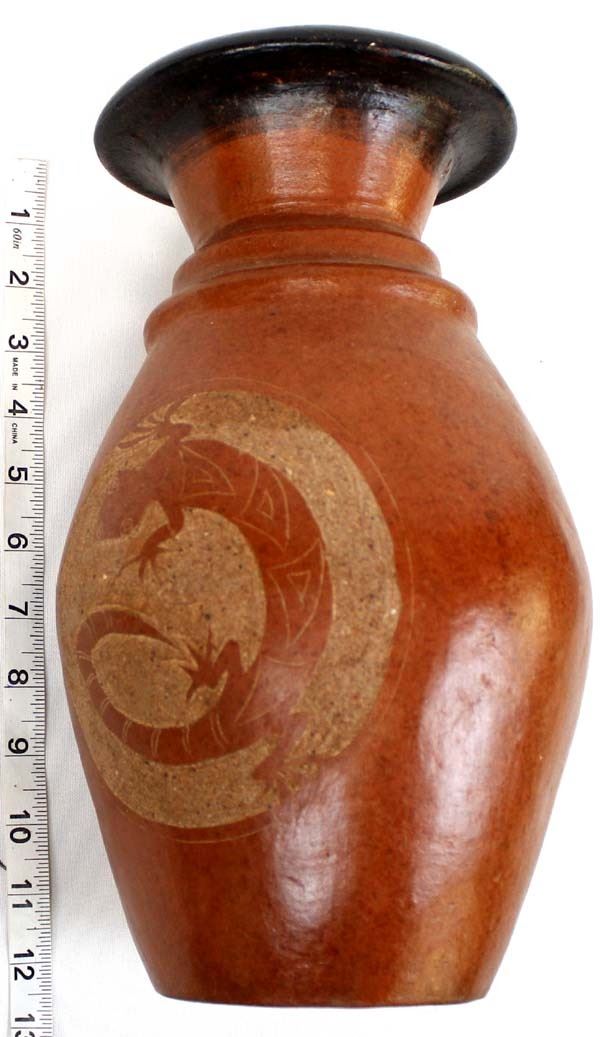 Large African Pottery Lizard Vase, measures 12'' x 8''