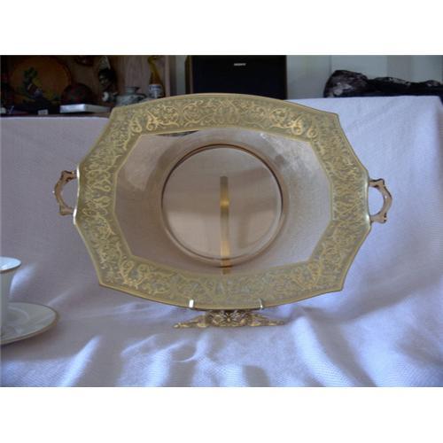 <table width="100%" border="0" cellspacing="0" cellpadding="4"><tr><td><em> </em></td></tr><tr> <td width="100%"> This platter is lovely and in excellent condition. Amber glass and 1.75" of gold trim on edge. The size is handle to handle 15" and side to side 10". No ware. No chips. The date is probably early 1900's, but I am not sure. I do know the people who owned this lived in San Francisco, and traveled abroad. They picked up many items like this. It was in the late 1800's and early 1900's. </td></tr><tr> <td> </td></tr><tr> <td>Reference #: 127</td></tr><tr><td>Condition:Excellent</td></tr><tr><td>Year:1900's</td></tr><tr><td>Country:France?</td></tr><tr><td>Maker:unknown</td></tr><tr><td>Width:15</td></tr><tr><td>Title:Large Amber Glass with gold trim platter</td></tr><tr><td>Style:French</td></tr><tr><td>Materials:Amber glass & gold</td></tr><tr><td>Type:Leaf</td></tr><tr><td>Location:Shasta Lake City, California</td></tr></table>