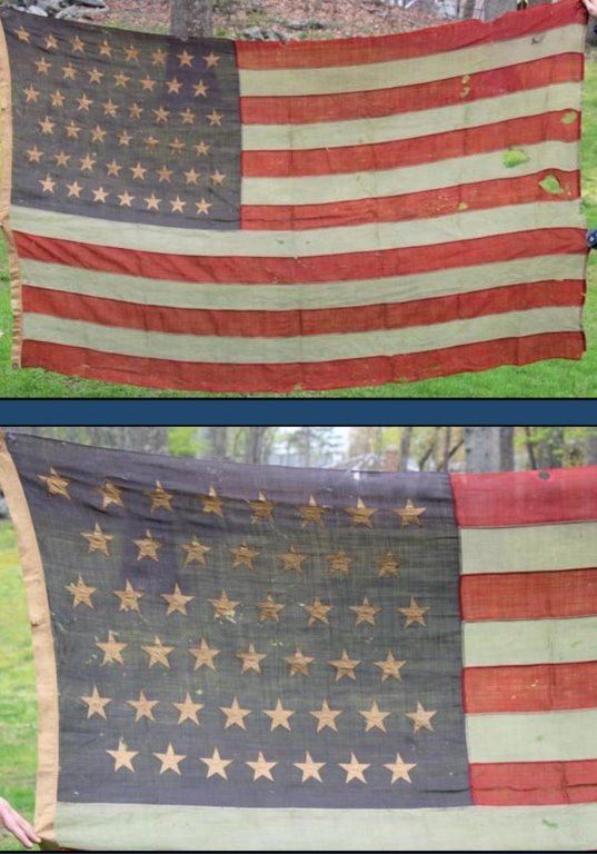 Flag Is 5ft Tall By 8ft 9in Long. This Flag Became The Official Flag Of The U S A On July 4th 1896. There Is The Name O' Dell Written On The Canton That May Help Further Research The History. There Are Scattered Holes And Worn Spots On Edge. Attributed To Being Originally Owned By James O' Dell Family. Billings, Mt