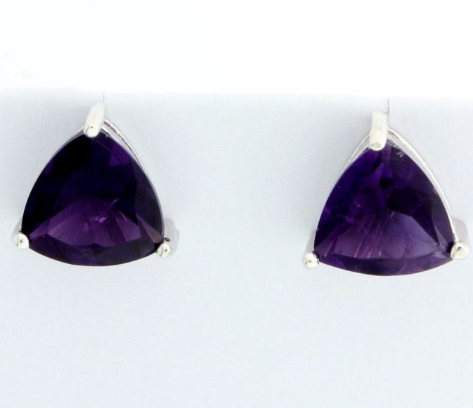 The trillion cut earrings are in platinum over sterling silver. 3.3g