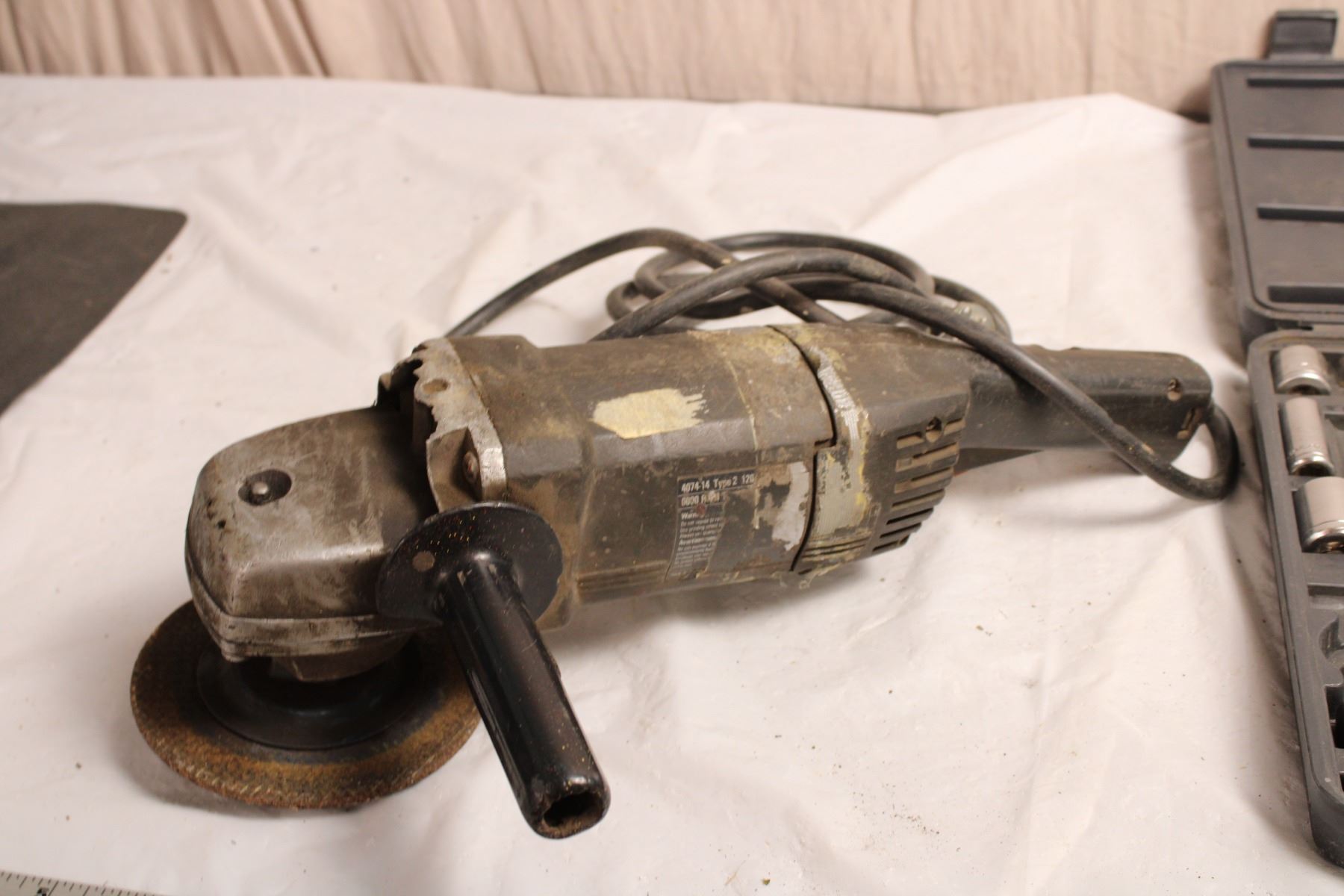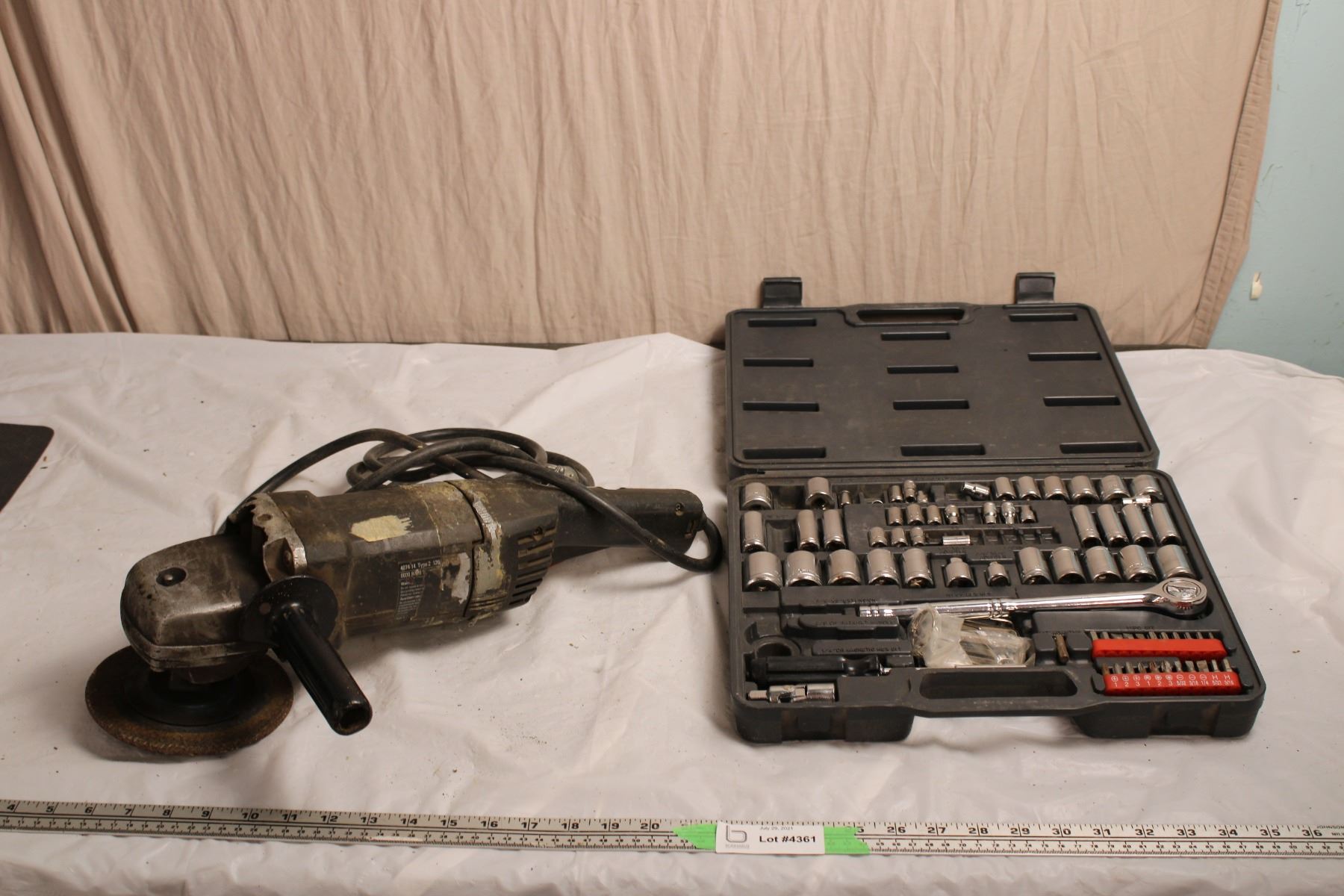 Large Angle Grinder (works) + Socket Set + Ratchet