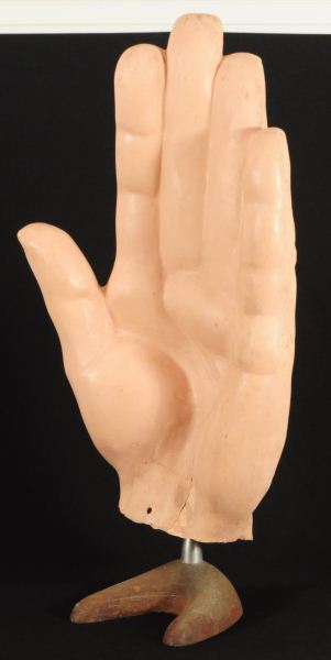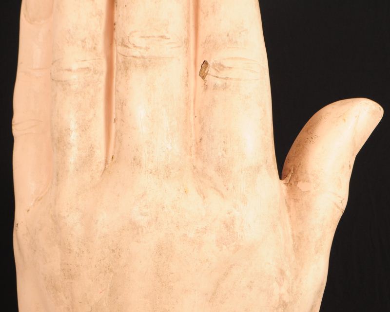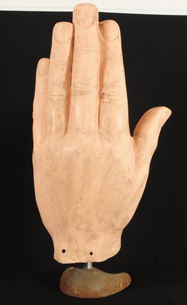 Large Antique Advertising Hand Measures 41" x 25", With Metal Stand
