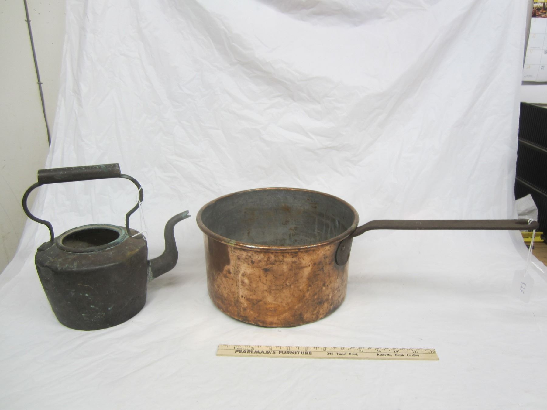 Large Antique Copper Pot by J.A. Cederberg and Copper Kettle no lid