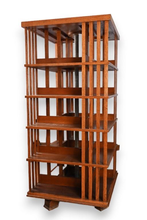 Very Large Antique Oak Revolving Book Case. Excellent Condition. Measures 31" x 31" x 68". LOCAL PICKUP/TRANSPORT RECOMMENDED.
