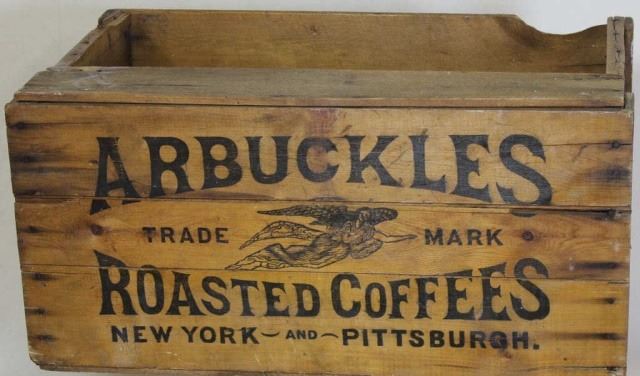 Large Arbuckles Roasted Coffee crate16" X 20" X 32", showing strong graphics and nice patina. Est. 250-400