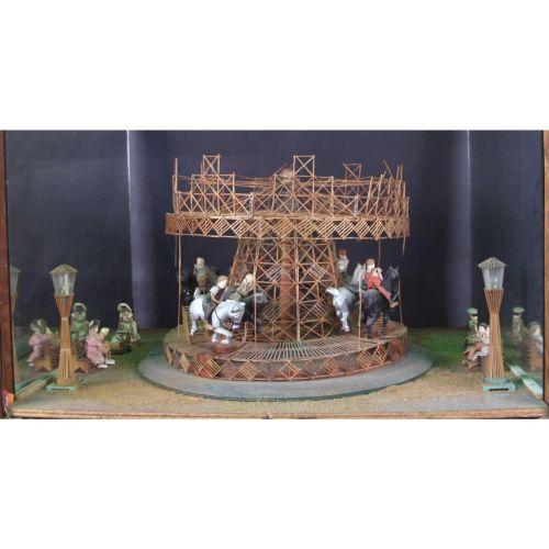 Large Arcade "Toothpick" Model "The Carnival" Made by Inmates of San Quentin Penetentiary (From the World Famous "Musee Mecanique" at Fisherman's Wharf, San Francisco, Ca) Lights up and revolves