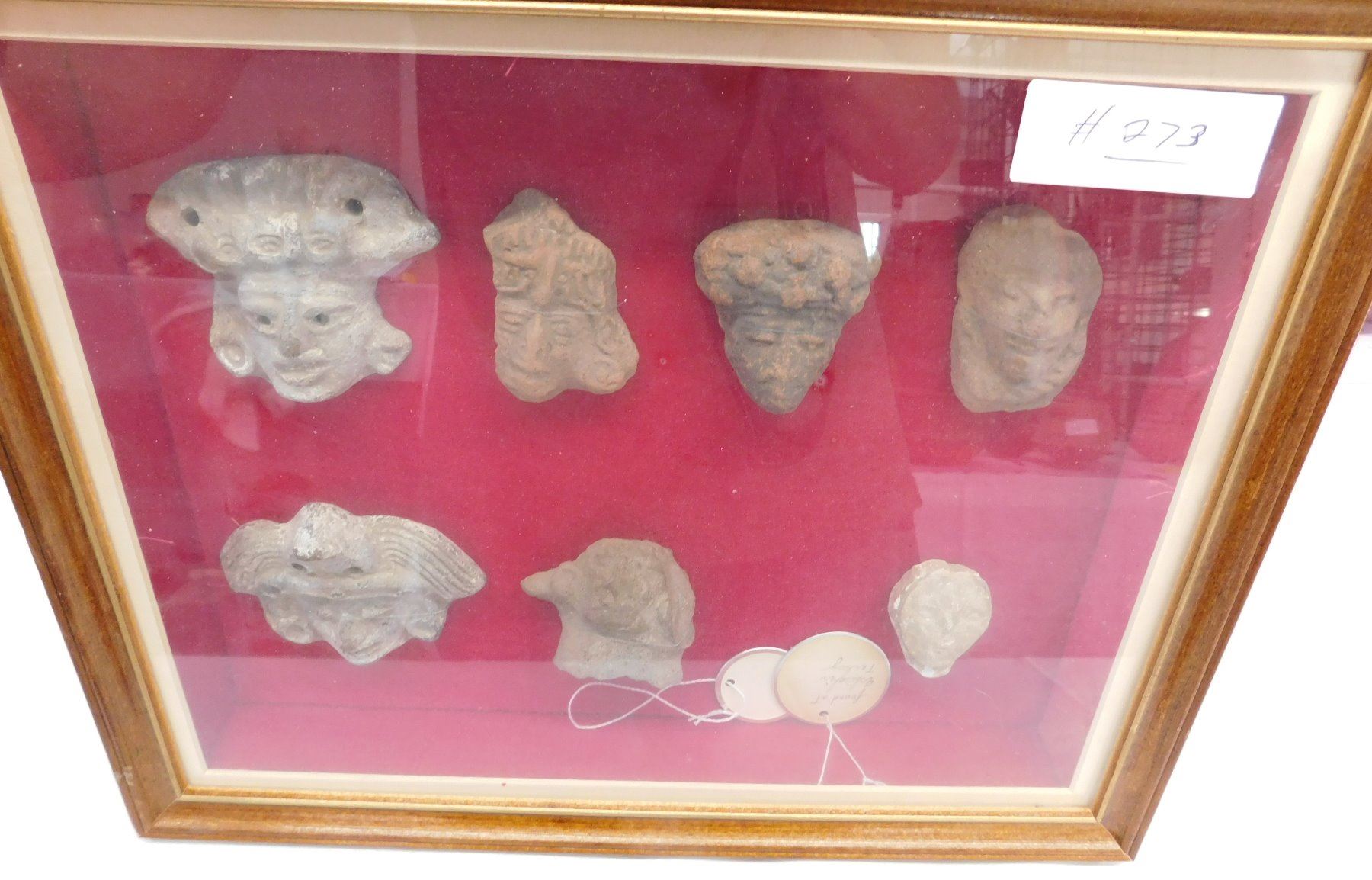 Large Artifact Frame, pre-historic items. Made of clay, the item measure from 1 7/8" to 3 3/4". One from Turkey. Frame not included. Condition: As found, see images. Shipping: $25.50 w/insurance and signature.