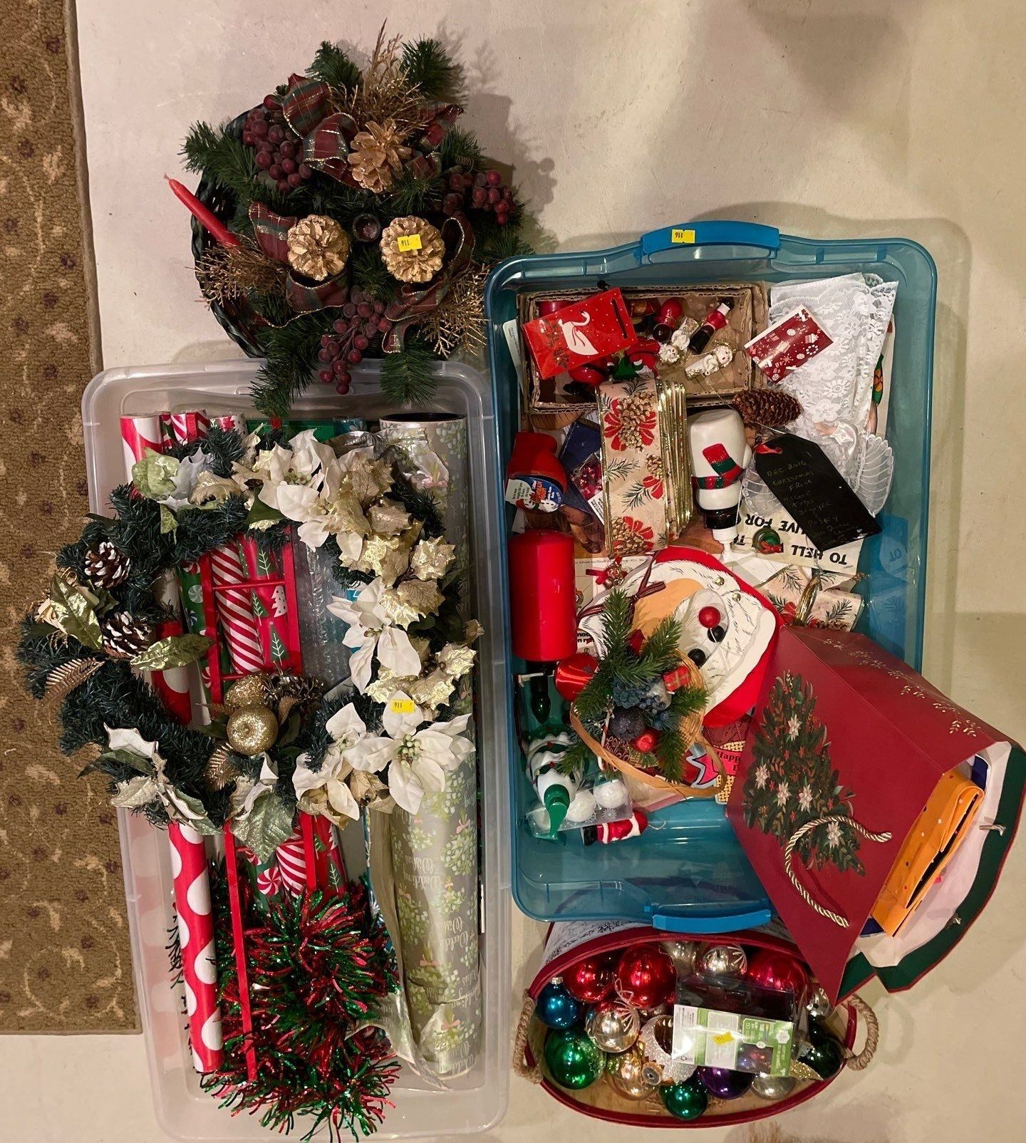 Large Assortment Of Christmas Decor, Wrapping Paper, Gift Bags,Ornaments, Decor,And More