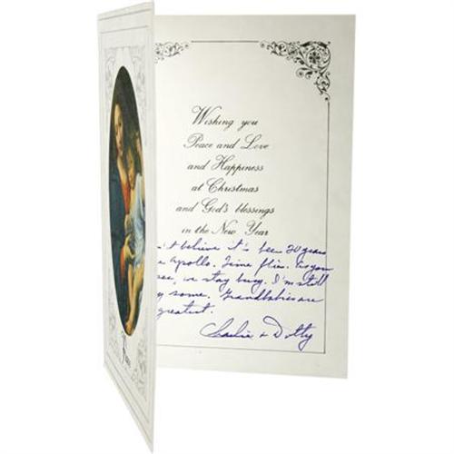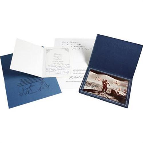 <B>Large Assortment of Astronaut Signed Christmas Cards.</B></I> Various sizes on card stock. Typical Christmas themes. This large and attractive lot of astronaut family Christmas cards are all addressed to Joe Garino. The lot contains six cards from Eugene Cernan, three from Ed Gibson, two each from Gus Grissom's surviving family, Vance Brand, and Joe Engle, and one each from Jack Lousma, Bill Anders, Frank Borman, Scott Carpenter, Gordon Cooper, Michael Collins, Ron Evans, and more. All cards are in fine condition, with usual wear. <I>From the collection of renowned former physical trainer of the astronauts Joe Garino. This lot is accompanied by a signed certificate of authentication from Garino verifying its provenance.</B></I><BR><BR><b>Shipping:</b> Flat Material, Small (<a target="_blank" href="http://www.heritageauctions.com/common/shipping.php">view shipping information</a>)