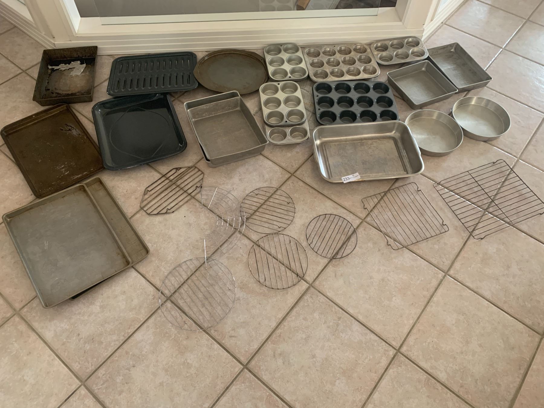 Large Assortment of Baking Sheets, Muffin Tins, Pie Sheets, & More!