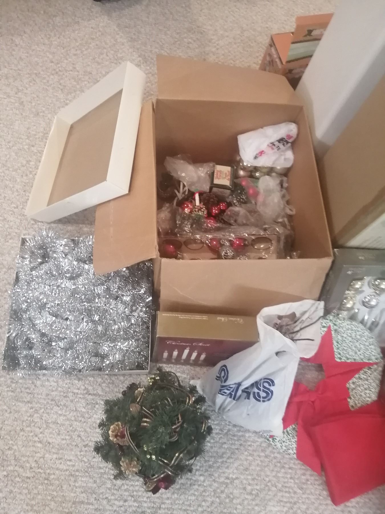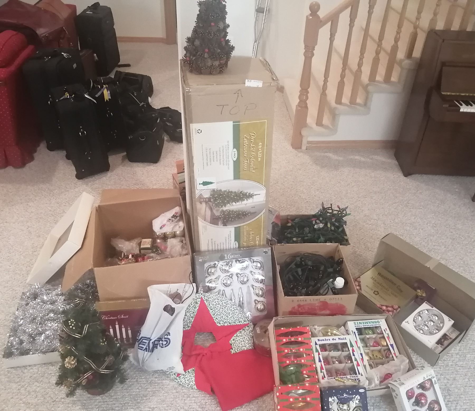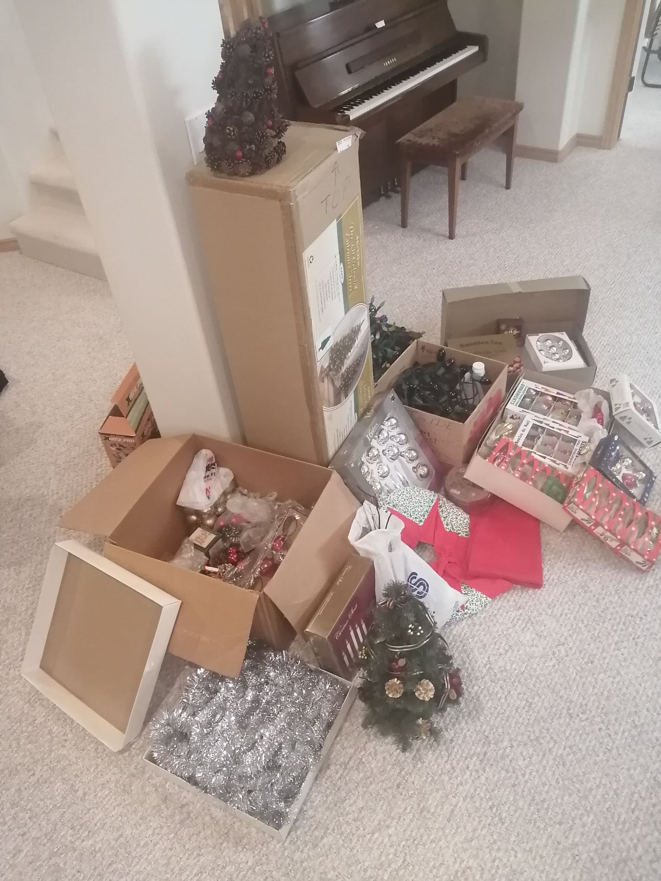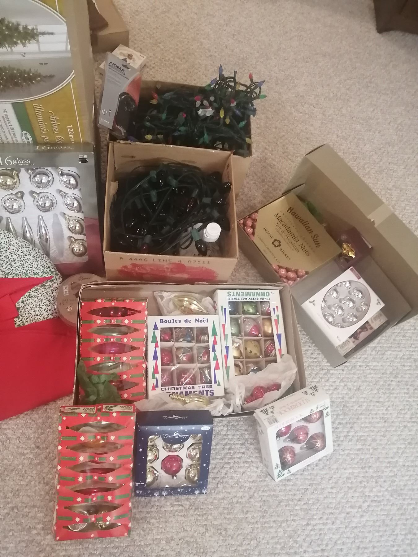 Including lights, decorations, tinsel, 4' tree, mini trees, and more!