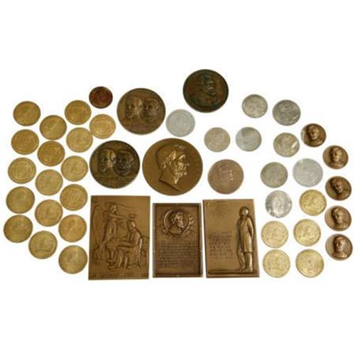<B>Large Assortment of Lincoln and Civil War-Related Medals and Tokens.</B></I> Approximately 40 medals and tokens are included in this lot, with 11 of them being solely related to Abraham Lincoln and the rest mostly dedicated to the Civil War. Included in the Civil War medals are two bronze 62mm medals commemorating the Battle of Manassas-Bull Run, several tokens celebrating JEB Stuart's raid at Chambersburg, and one Gatling Gun Centennial Medal, among others. Overall, the medals are in fine condition, with the Lincoln medals and the bronze Civil War medals in extremely fine condition.<BR><BR><b>Shipping:</b> Miscellaneous Collectibles, Larg (<a target="_blank" href="http://www.heritageauctions.com/common/shipping.php">view shipping information</a>)