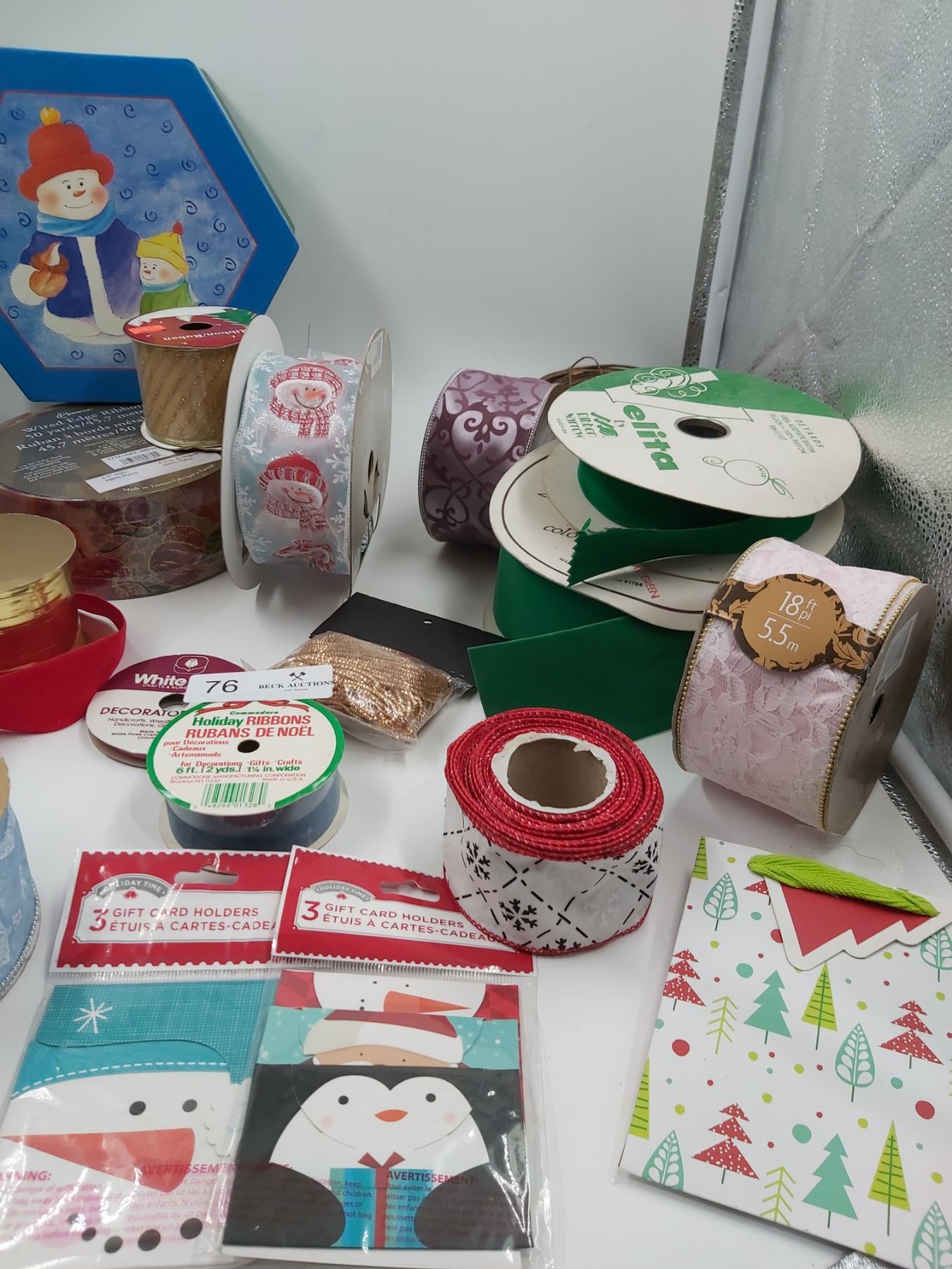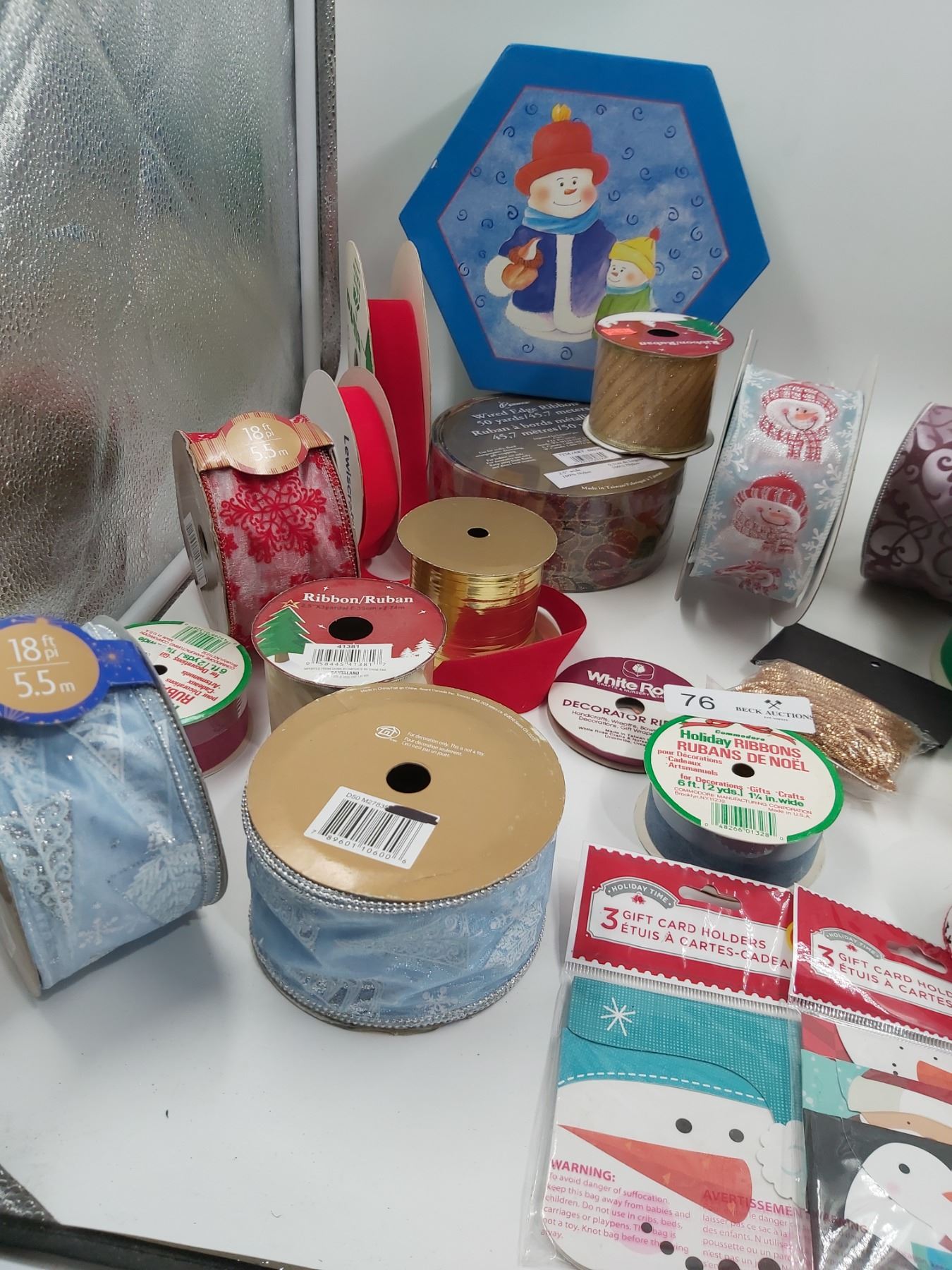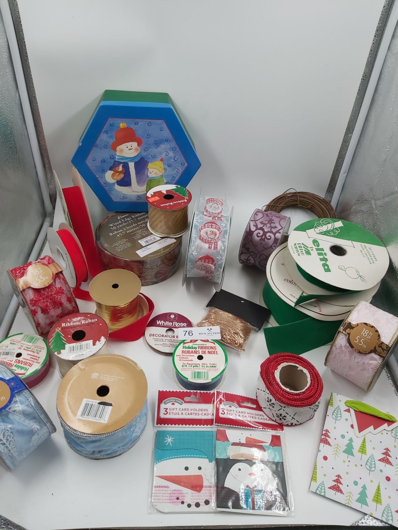 Large Assortment of Ribbon, including Holiday Gift Boxes