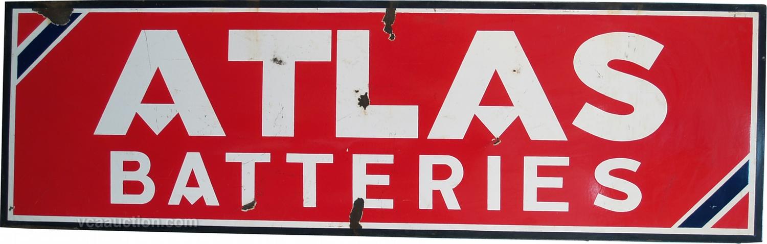 Large Atlas Batteries Porcelain Sign, w/ wood framing on back - 72" x 22"