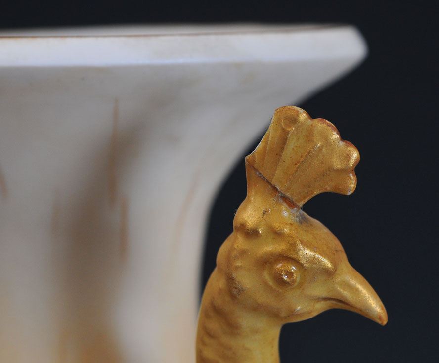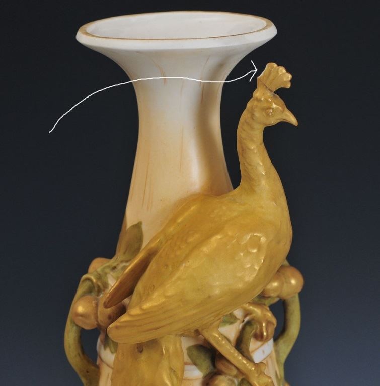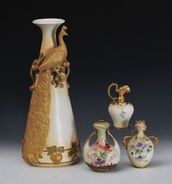 CONDITION REPORT: smaller vases all excellent, repair and loss to peacock's comb on largest