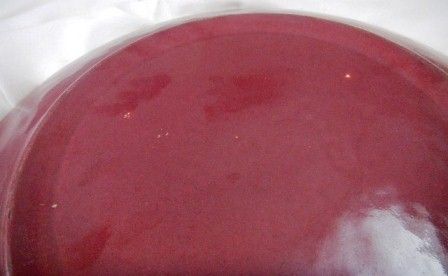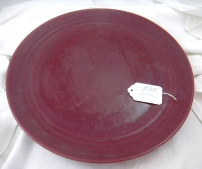 Maroon Bauer Pottery Plate by Bauer. Est. 1950. Diameter 14 inches. One small mouse bite ding on edge. Shipping $18.00