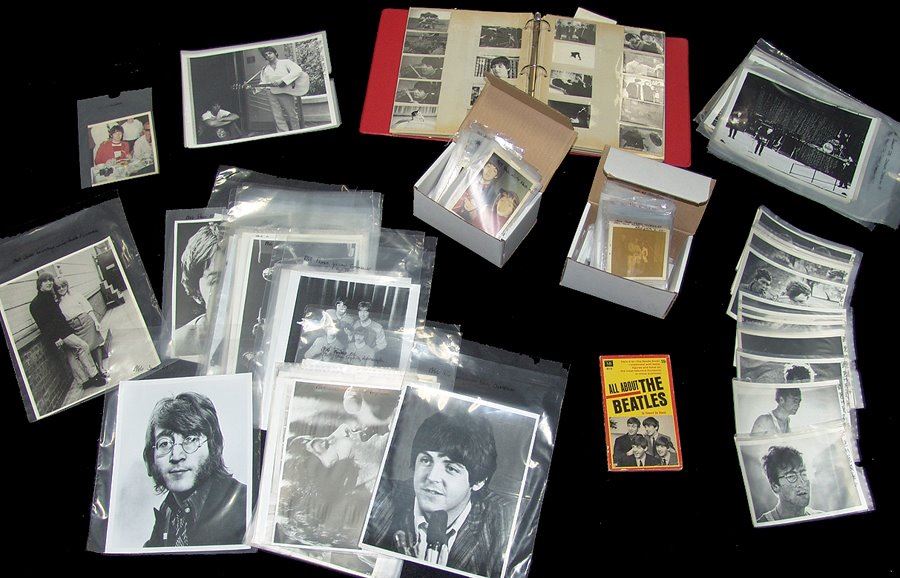 An amazing collection of color and (mostly) black and white photographs documenting the world's greatest rock and roll band, The Beatles - John Lennon, Paul McCartney, George Harrison, and Ringo Starr.,Ca. 1960s-1970s,5"x 7", 8"x10", 3 1/2"x5"