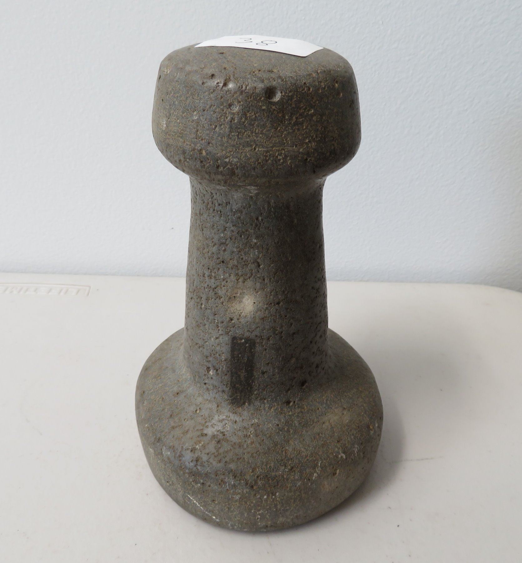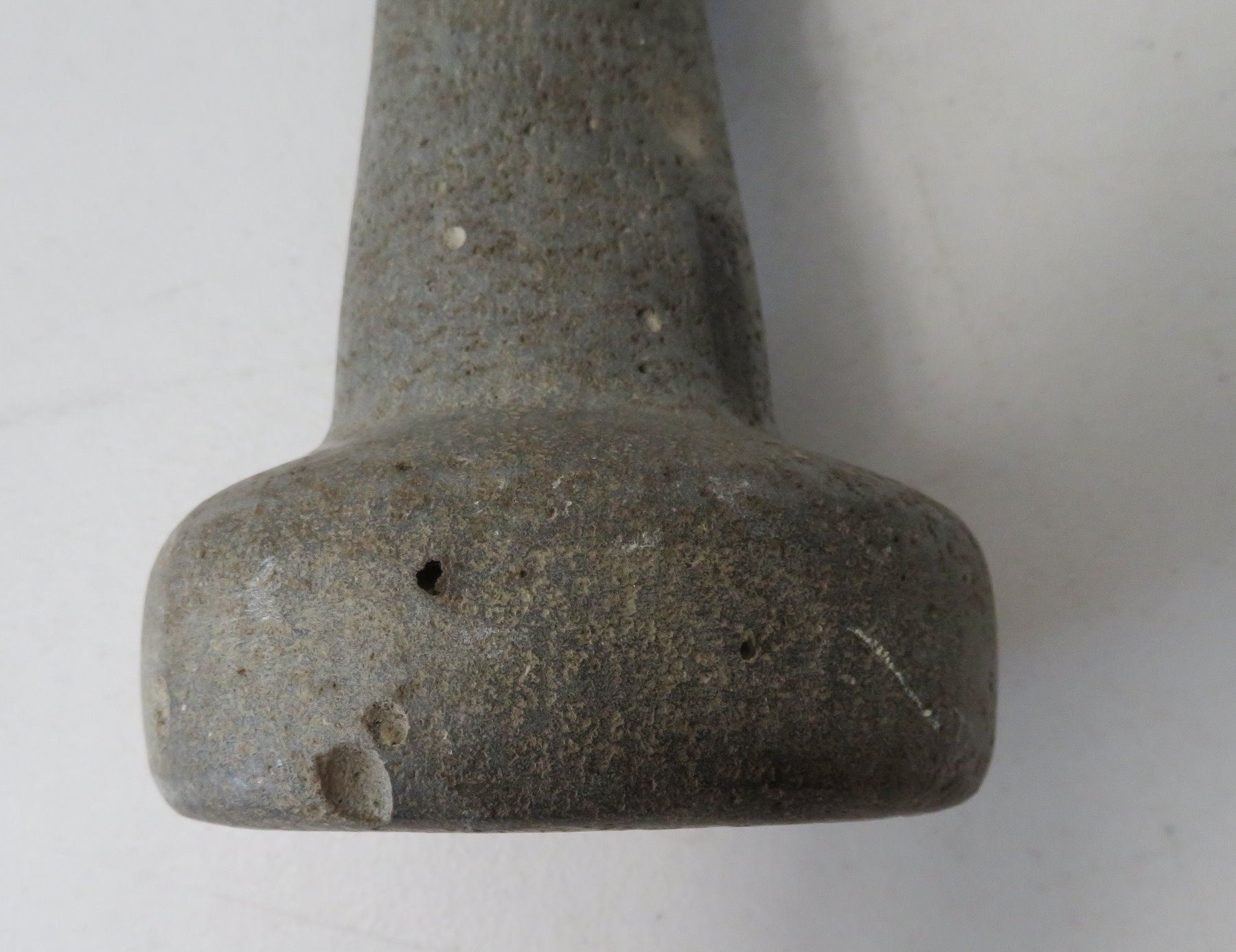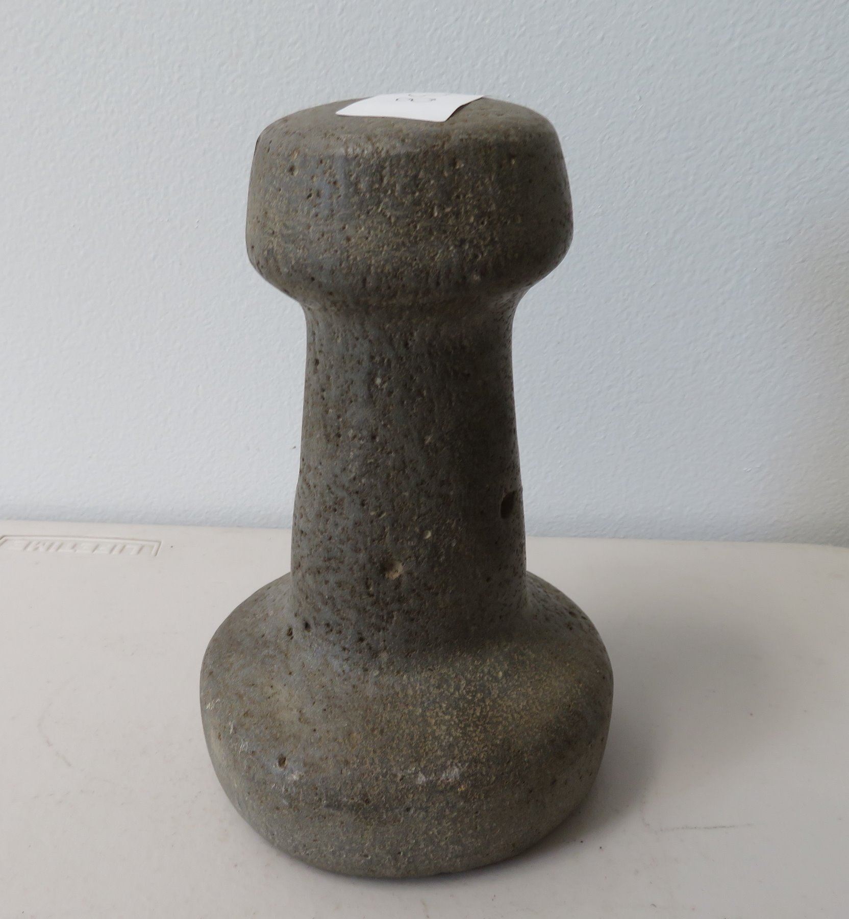 Large Bell Pestle, pre-historic item. Made of basalt, the item measures 4 1/2" x 4 1/2" x 7 1/2". Oregon. Condition: Good, see images. Shipping: $45.00 w/insurance and signature, double-boxed, due to size weight and value.
