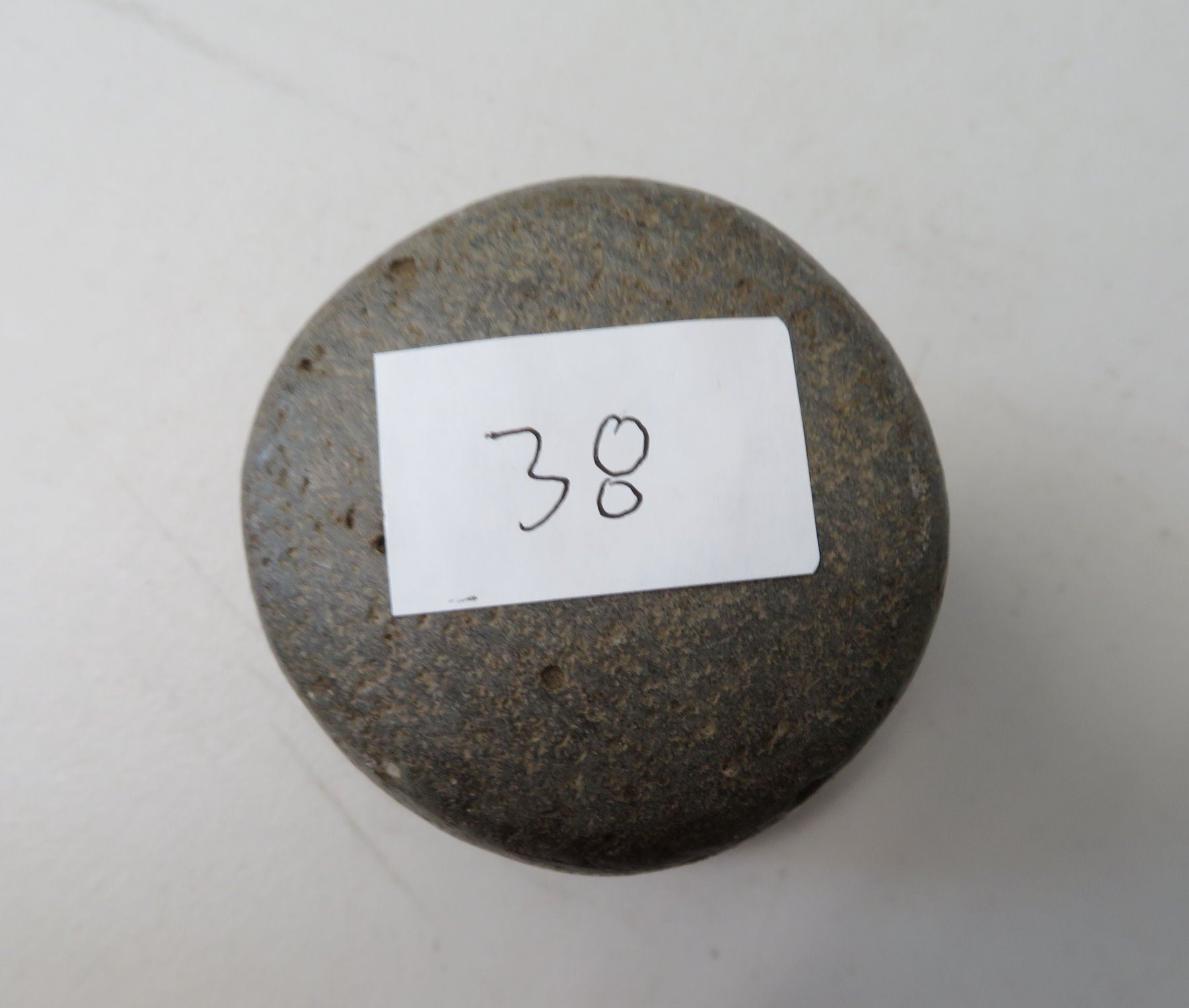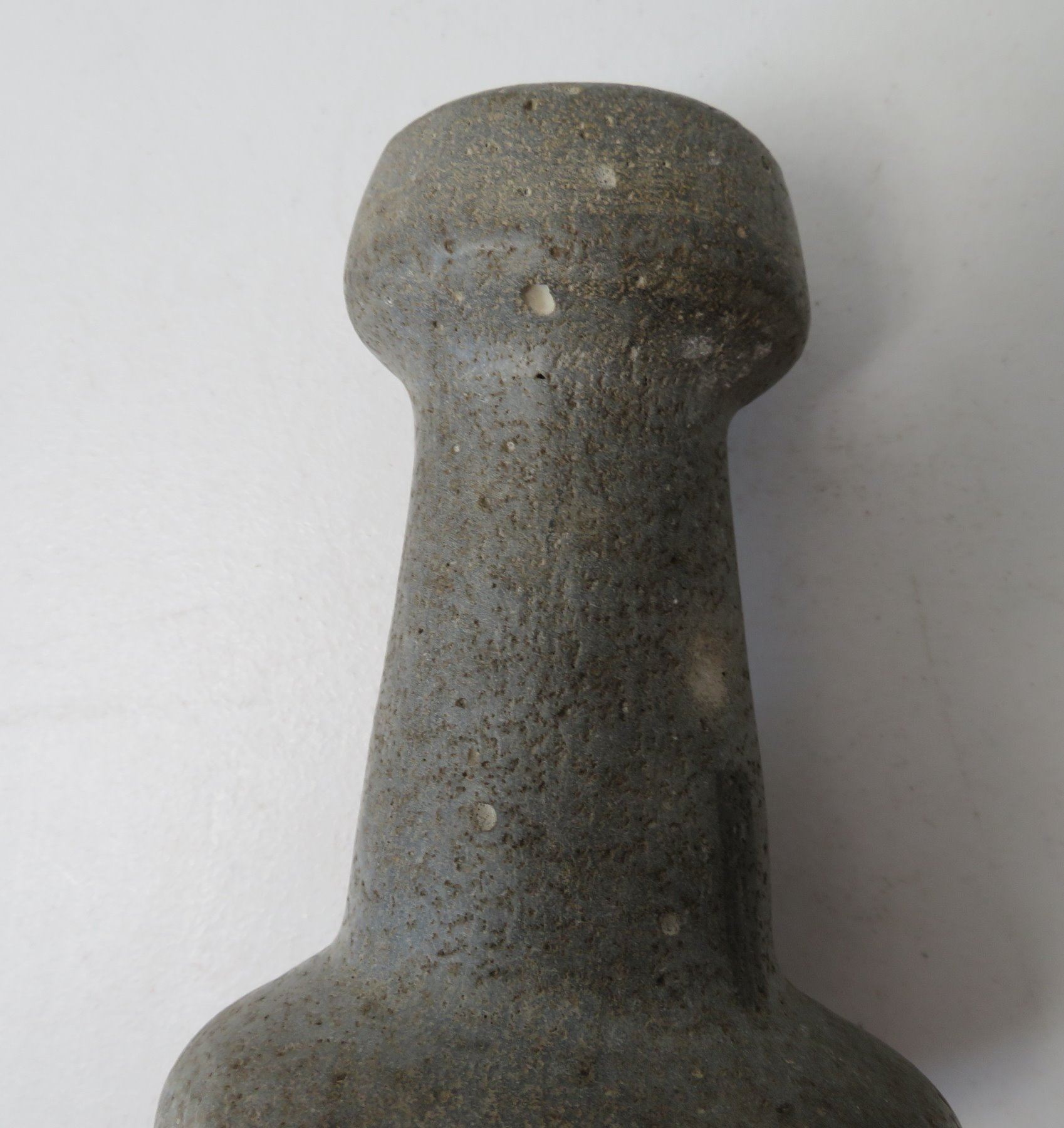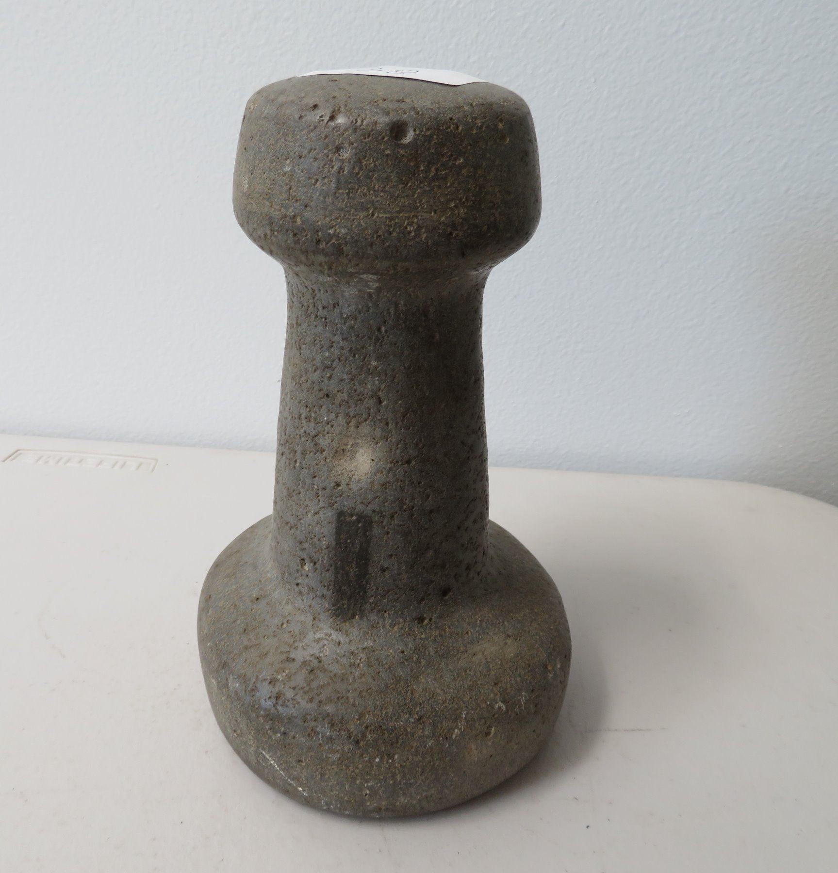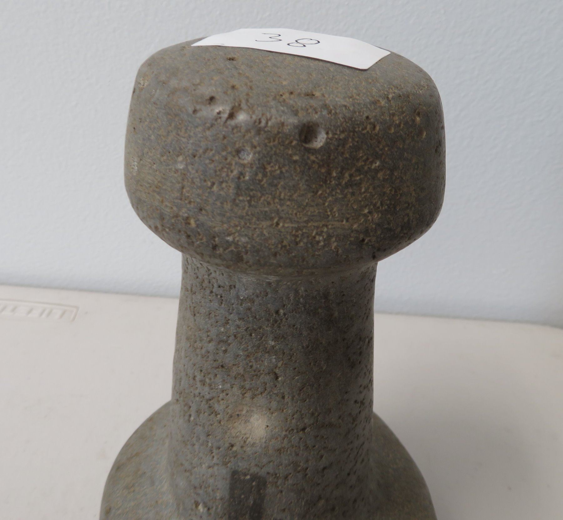 Large Bell Pestle, pre-historic item. Made of basalt, the item measures 4 1/2" x 4 1/2" x 7 1/2". Oregon. Condition: Good, see images. Shipping: $45.00 w/insurance and signature, double-boxed, due to size weight and value.