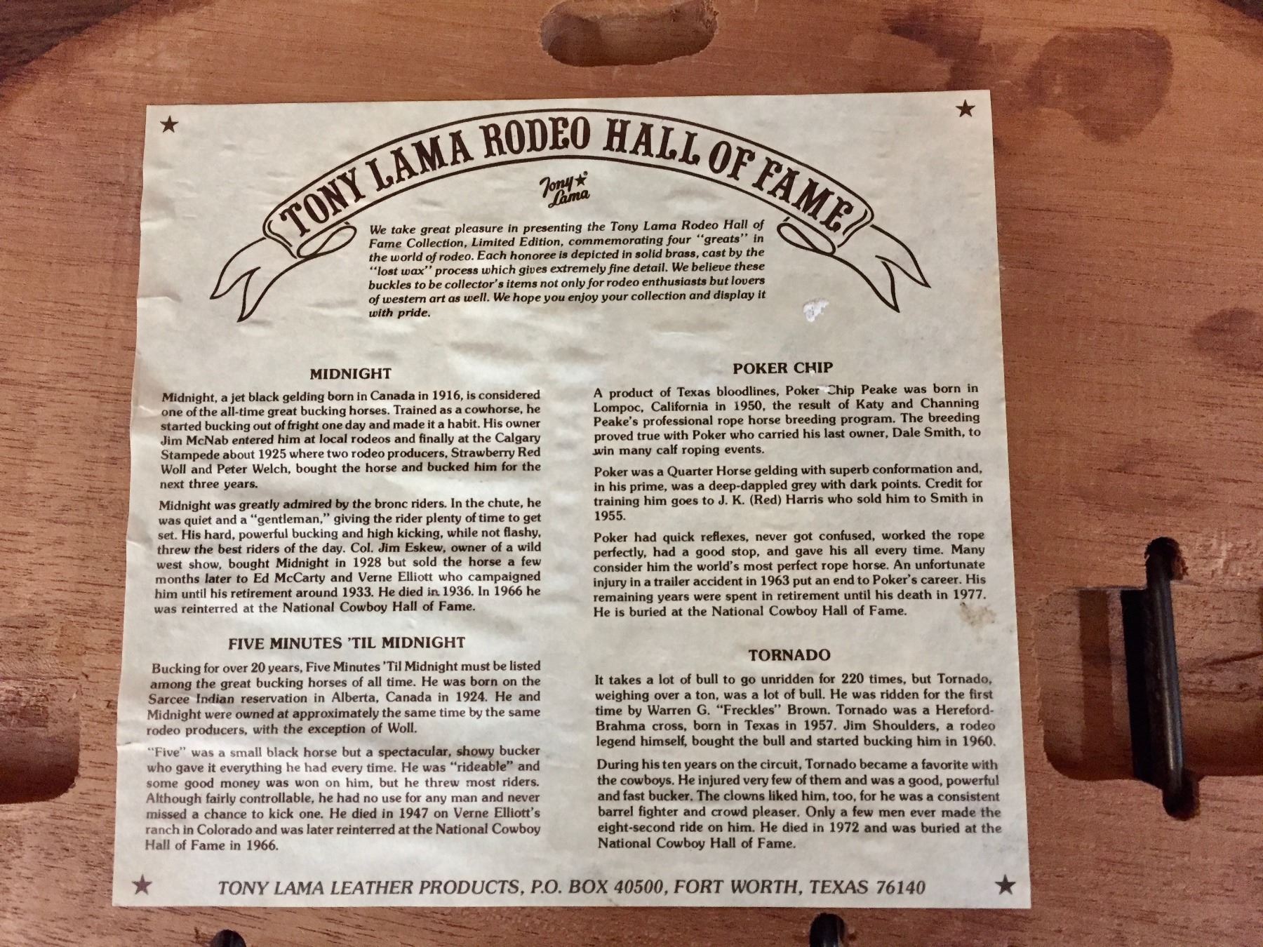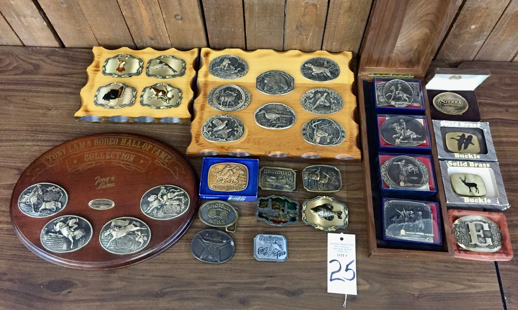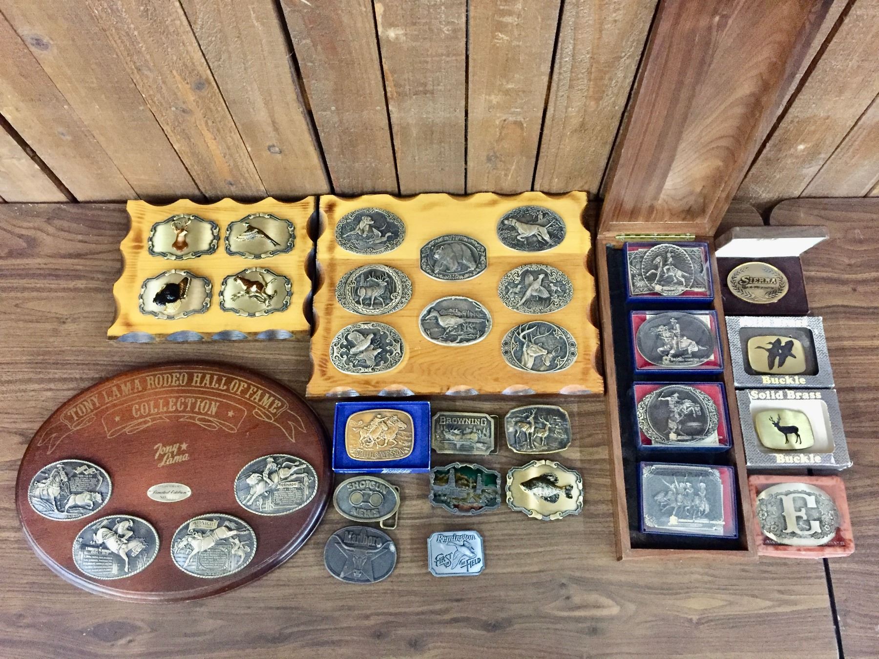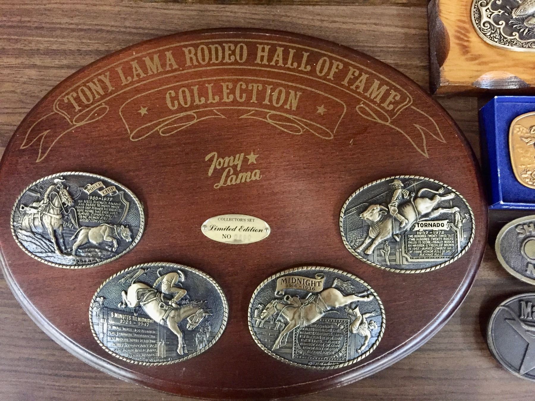 Description: Offered in this lot is a group of commemorative and vintage belt buckles, including the Tony Llama, Hall of Fame buckle collection. Take a look! There are a lot of buckles made by many various makers. There are 32 belt buckles total!                                                                                                                  Maker: Various.                                                                                                                 Approx. Age: Vintage, mostly 1970s and 80s..                                                                                                            Size: Various.                                                                                                                                                                                                                                Condition: Good for its age, normal wear expected.                                                                                                                Please look closely at the pictures - they are an important part of our description.                                Shipping: There will be a $15 handling / packaging fee for shipping this lot. The actual cost of postage will be added on top of that.