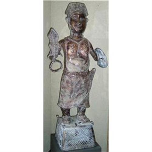 <tr><td>Title: Large Benin Africian Bronze warrior figure</td></tr>