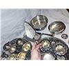 Large Bin of Silver Plate including: Teapots, Trays, & Cream & Sugars