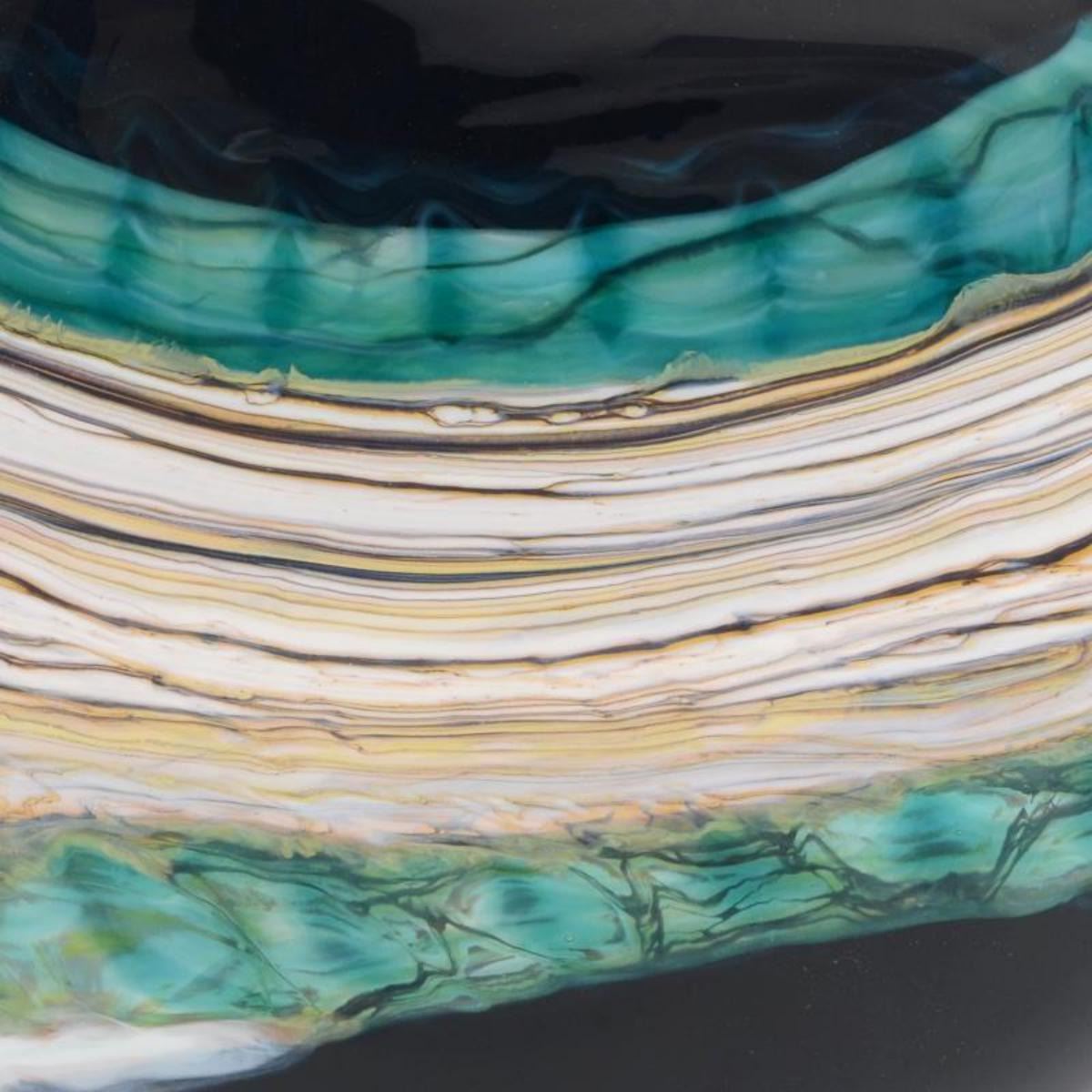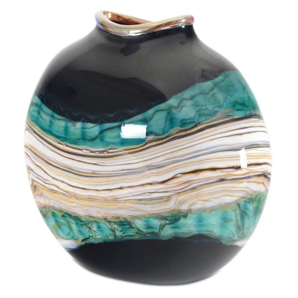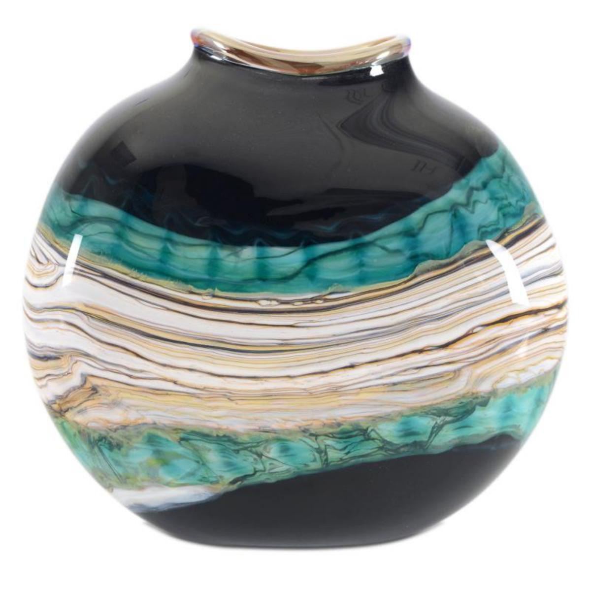 "Large Black Opal Flat Vessel" Hand Blown Glass Vase Sculpture, Hand Signed by GartnerBlade Glass.