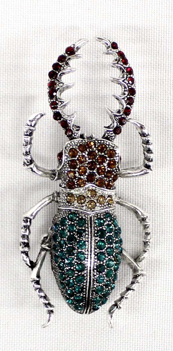 Large Bling Bling Stag Beetle Pin, measures 3''L x 1.5''