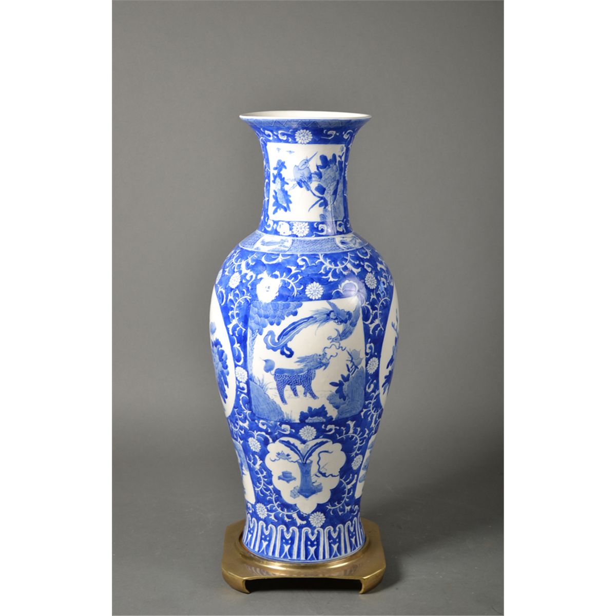 Depicting various real and mythological animals against a floral ground. Comes with a brass stand. 26"H w/o stand. 20th century. Private collection St. Claire Shores, MI