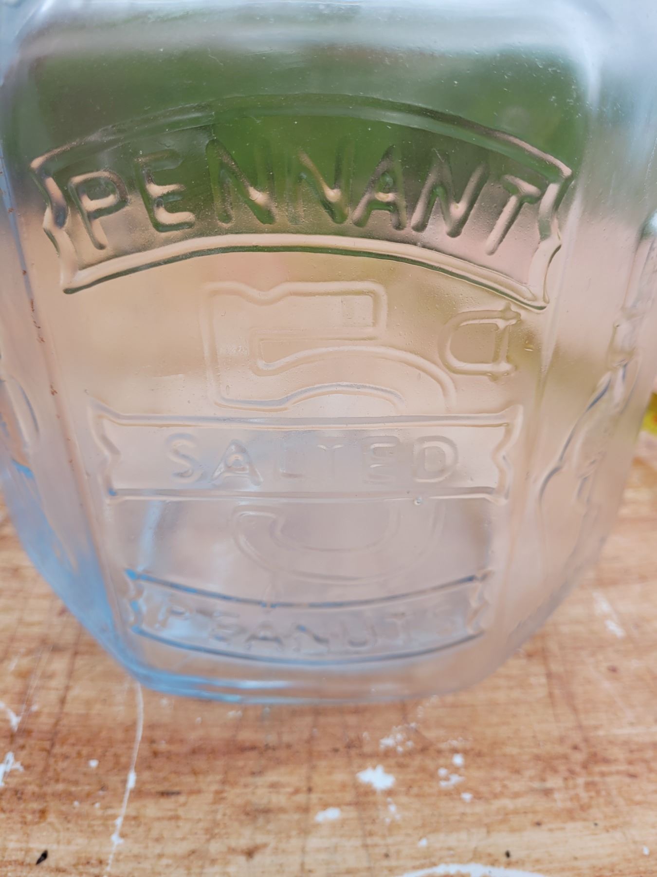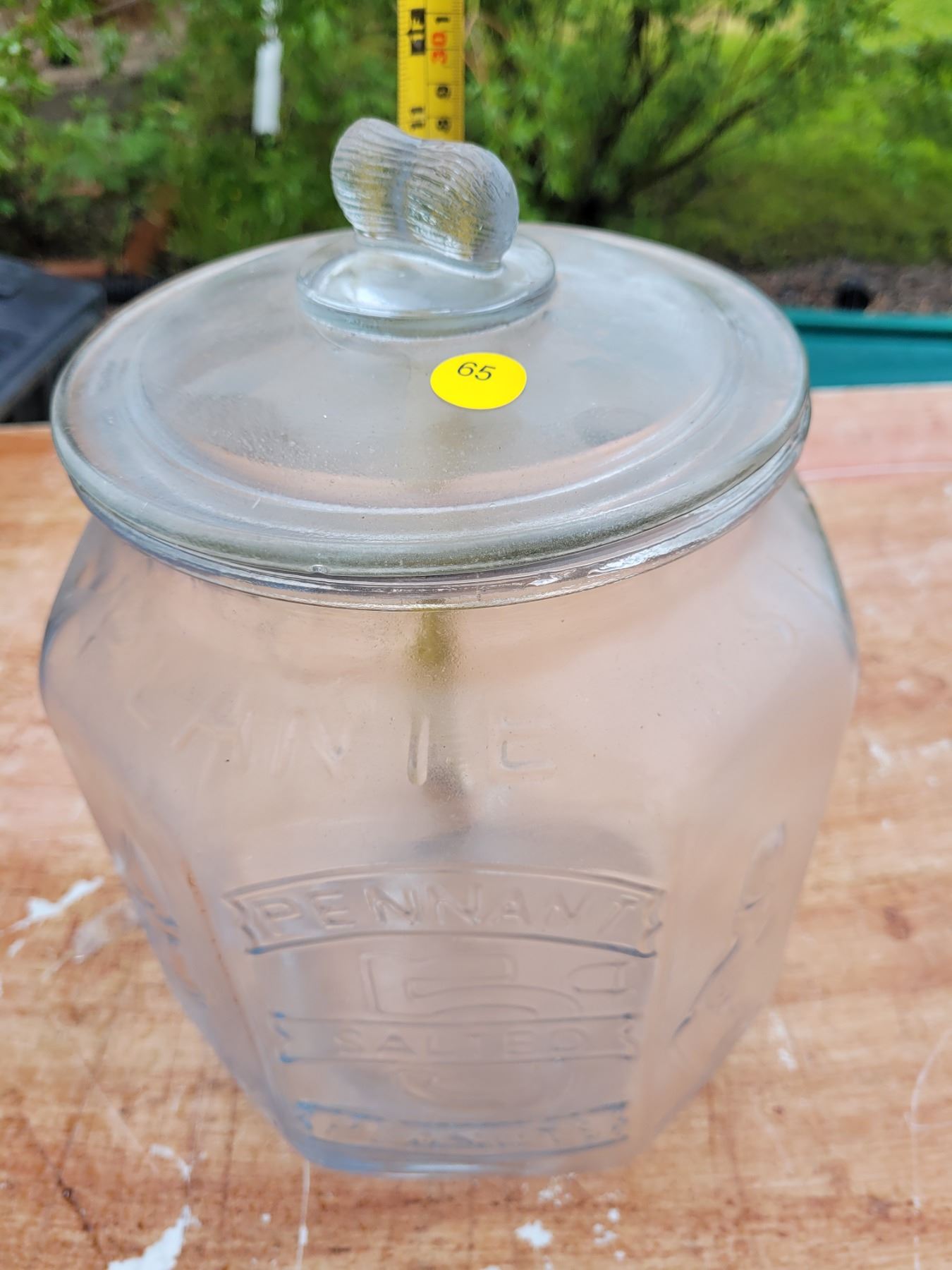 Large Blue Glass Planters Peanut Jar w/ Peanut Lid