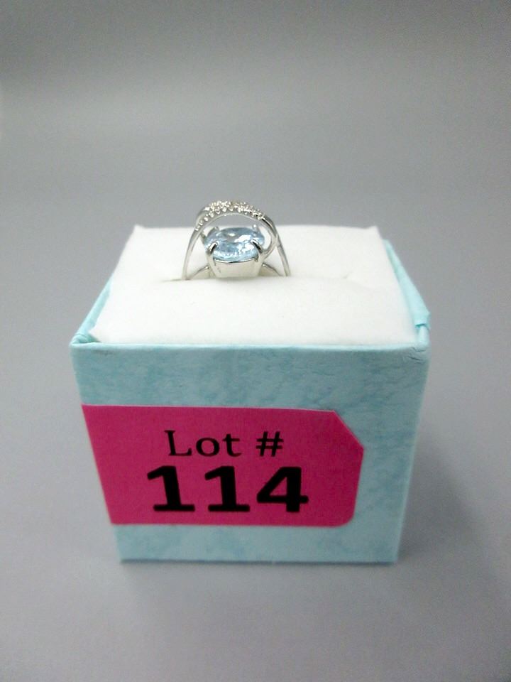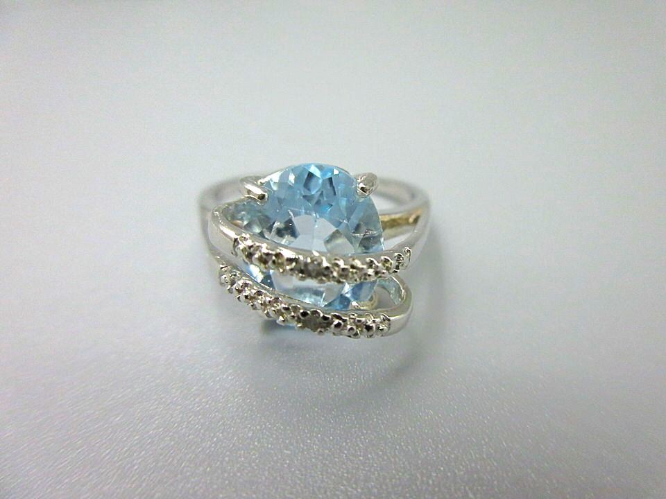 Sterling silver. 6+ CT oval cut blue topaz & 2 diamonds. Retail value $325.