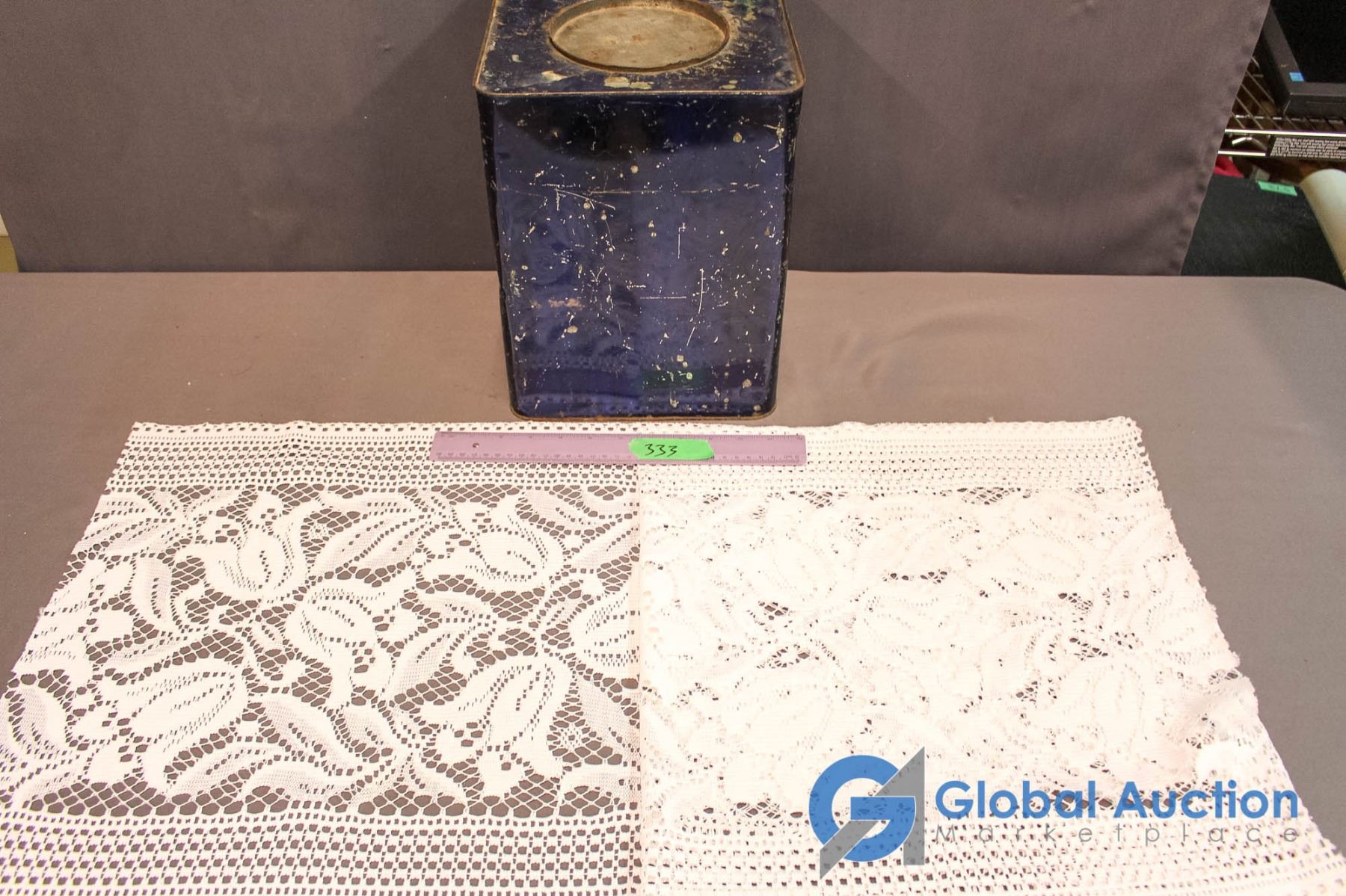 Large Blue Vintage Tin & Lace Table Runner