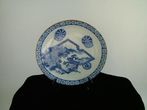 Japan (late 19th Century ) Blue and white glazed porcelain, glaze and stamp verso, dia. 11 1/2".