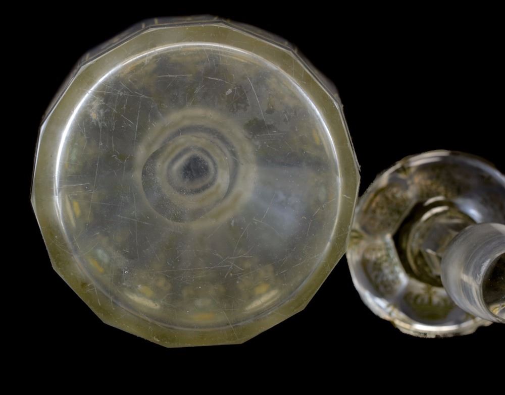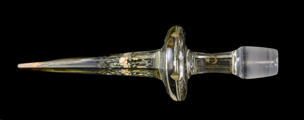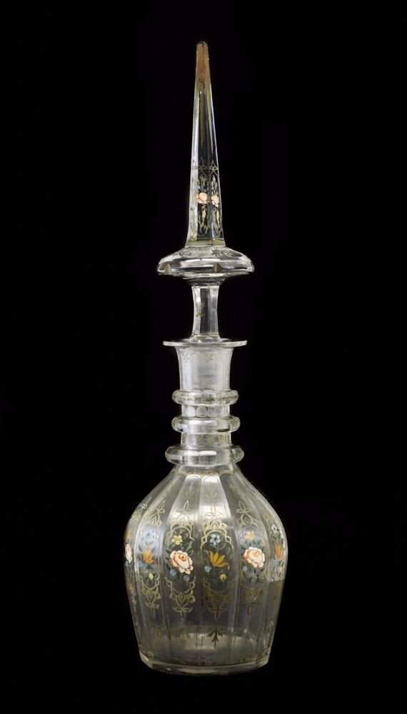 Large Bohemian Glass Decanter. Hand painted floral.