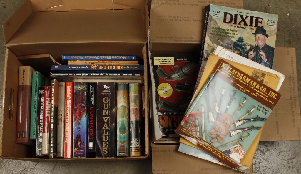 Including: "Spear Reloading Manual's for Hornady, Marlin Arms", "Blue Book of Gun Values", "Flayderman Guide", "Dixie Gun Works", and more.