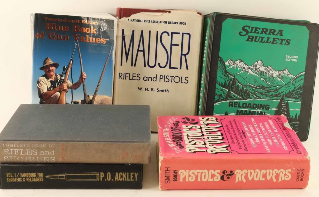 including several Blue Books of Value, rifle & shotgun related books, reloading books, gun illustrations and more, perfect for gun smithing student