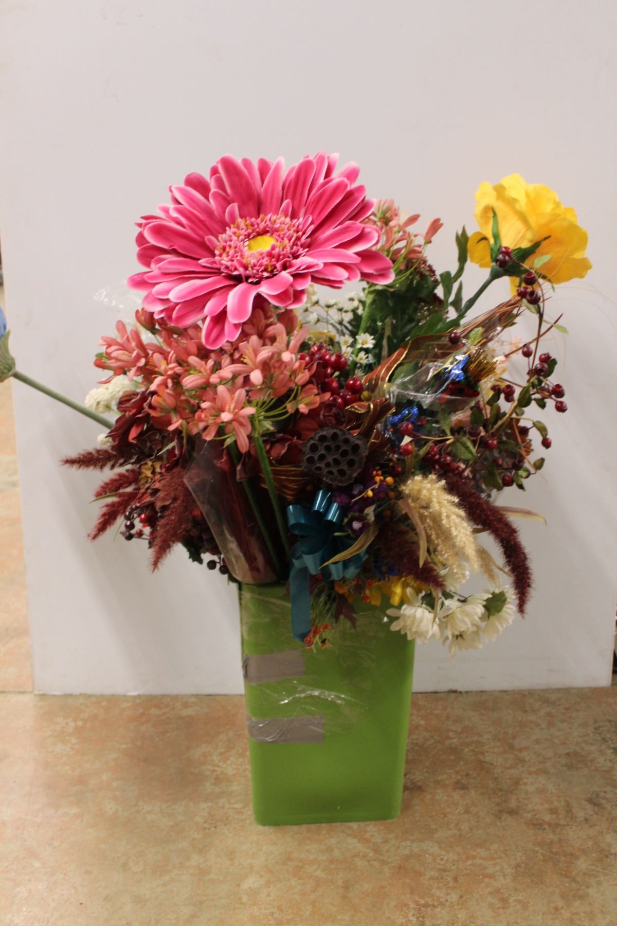* Large Bouquet with Vase (17" x 11" x 11" Vase, 42" High Full Display) Plastic Vase Has Crack