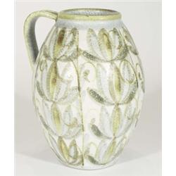 Large Bourne Denby stoneware jug, hand painted with leaves, marks and Glyn Colledge signature to bas