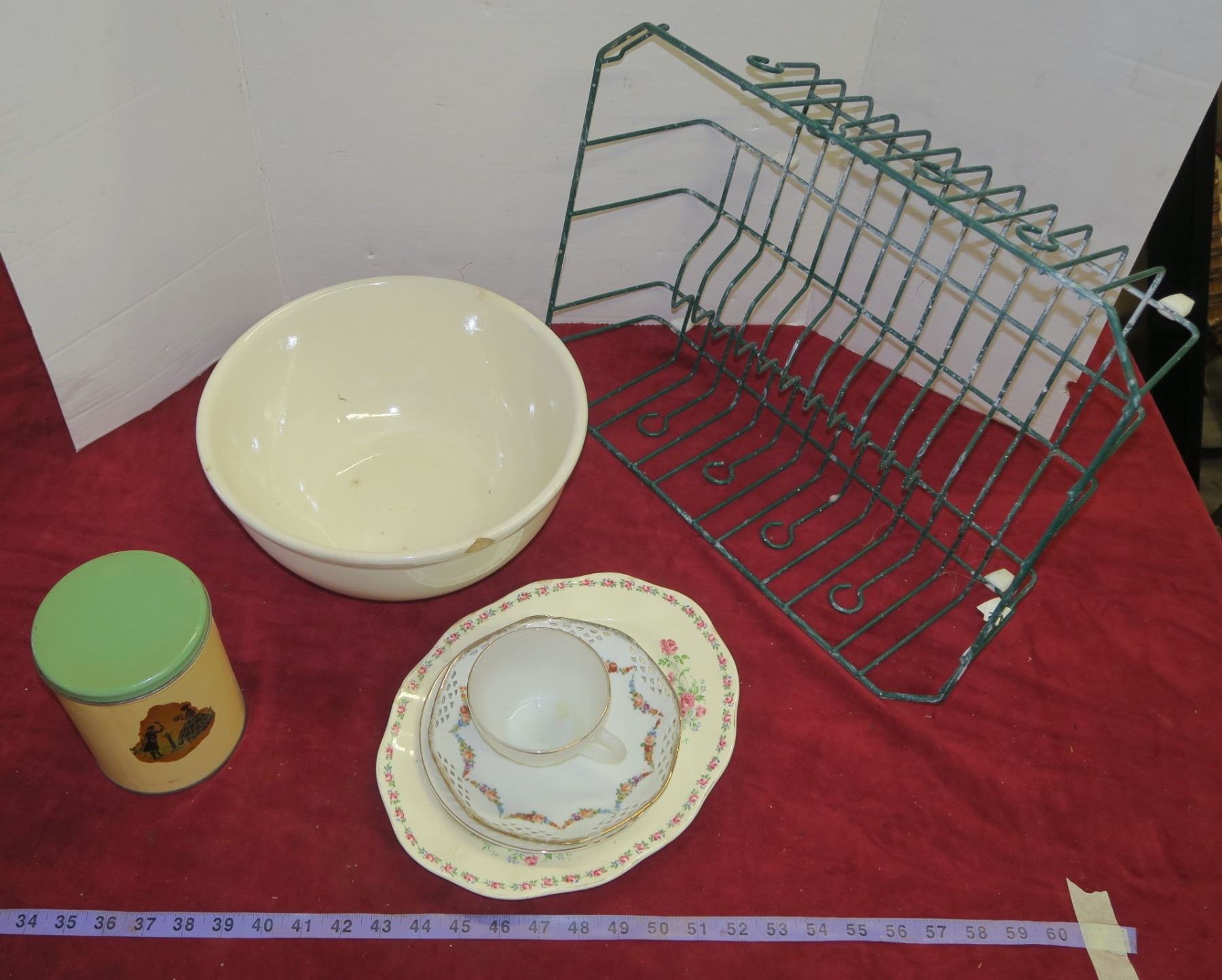 Large Bowl, Lot of Plates, Tin & Dish Rack