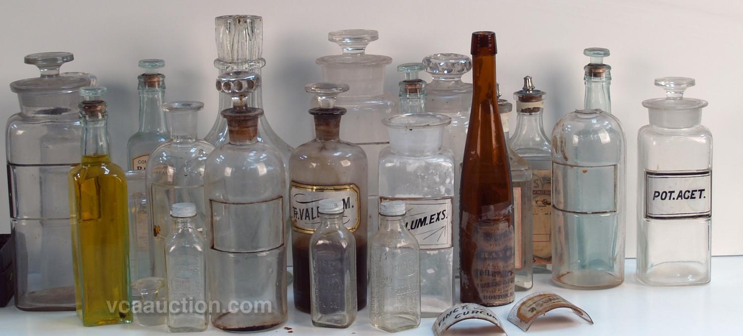 Large Box Lot Of Misc. Sized & Styles Apothacary Jars, some w/ lids & 11 sterling crown shaped top cork stoppers