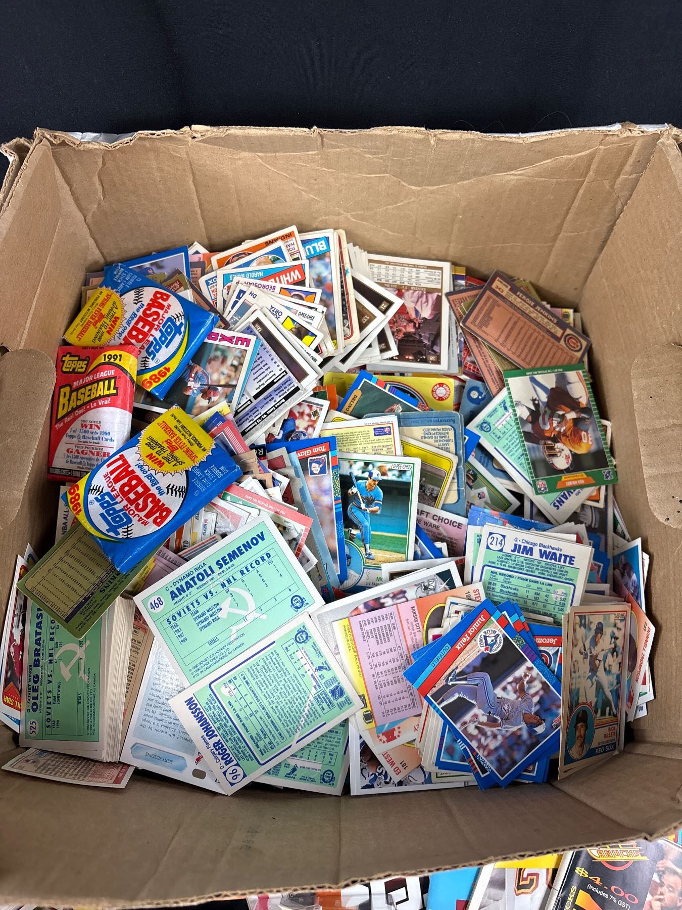 Large Box Lot of 1990s/80s Sports Cards & Magazines