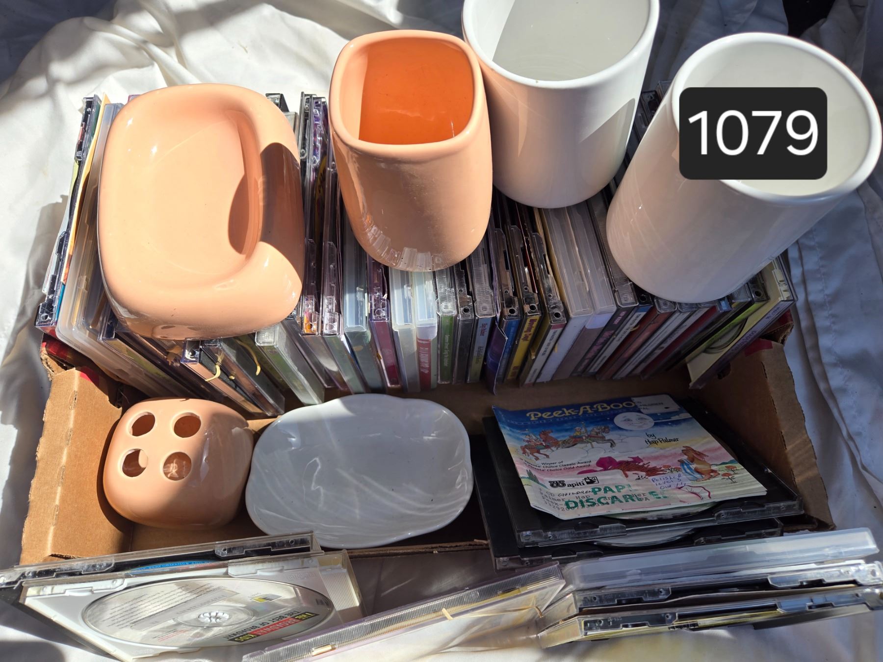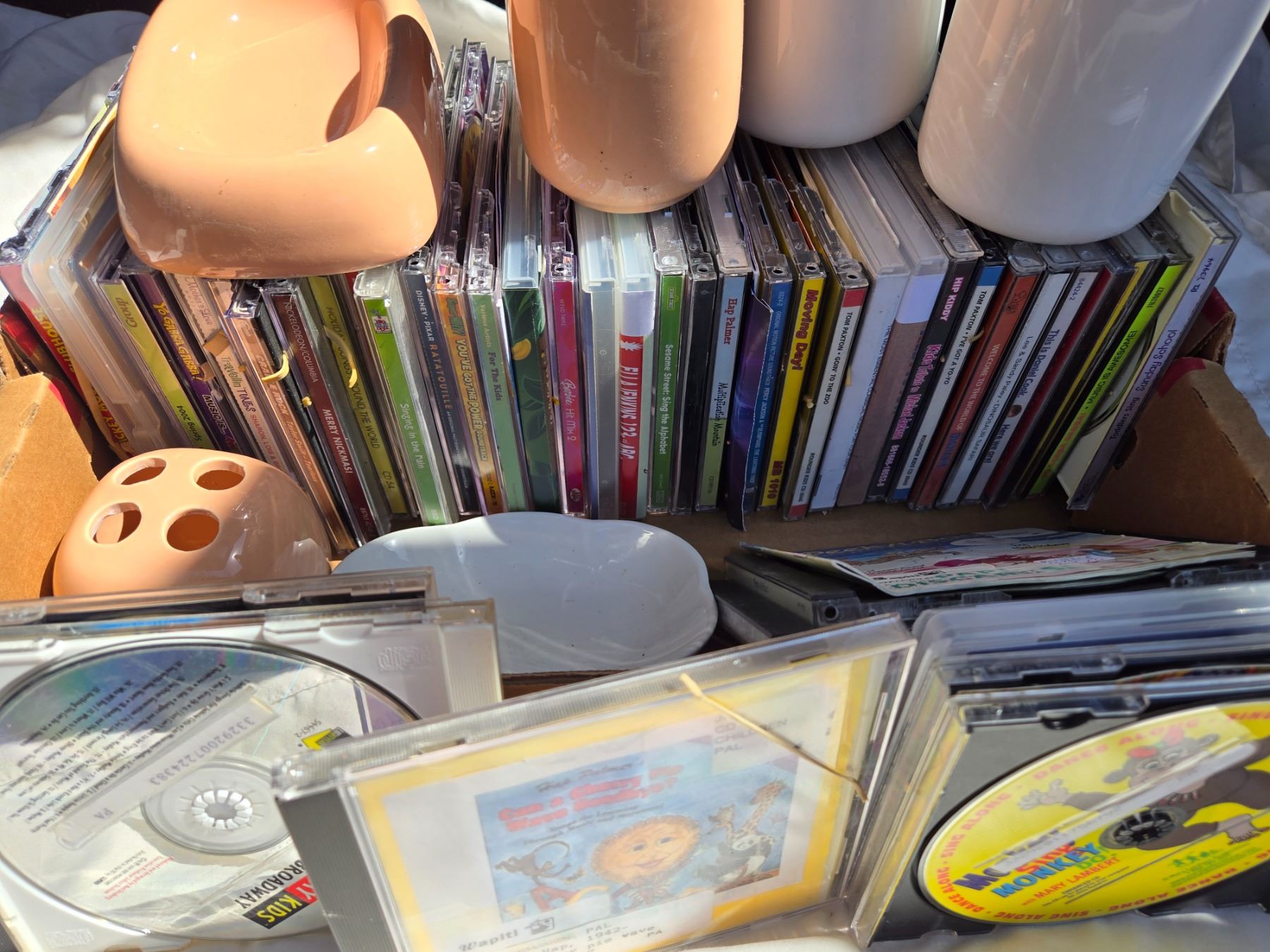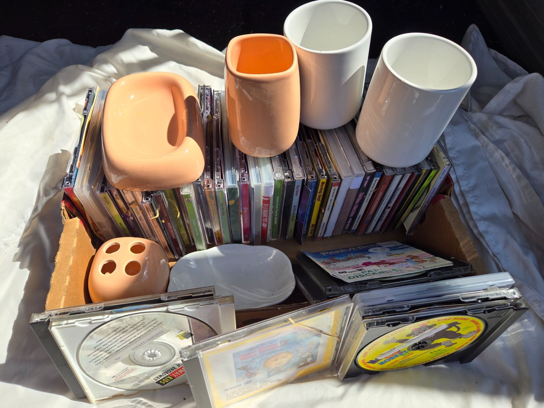 Large Box of Kids Misc CD’s (app 40) set of bathroom accessories Peach and White