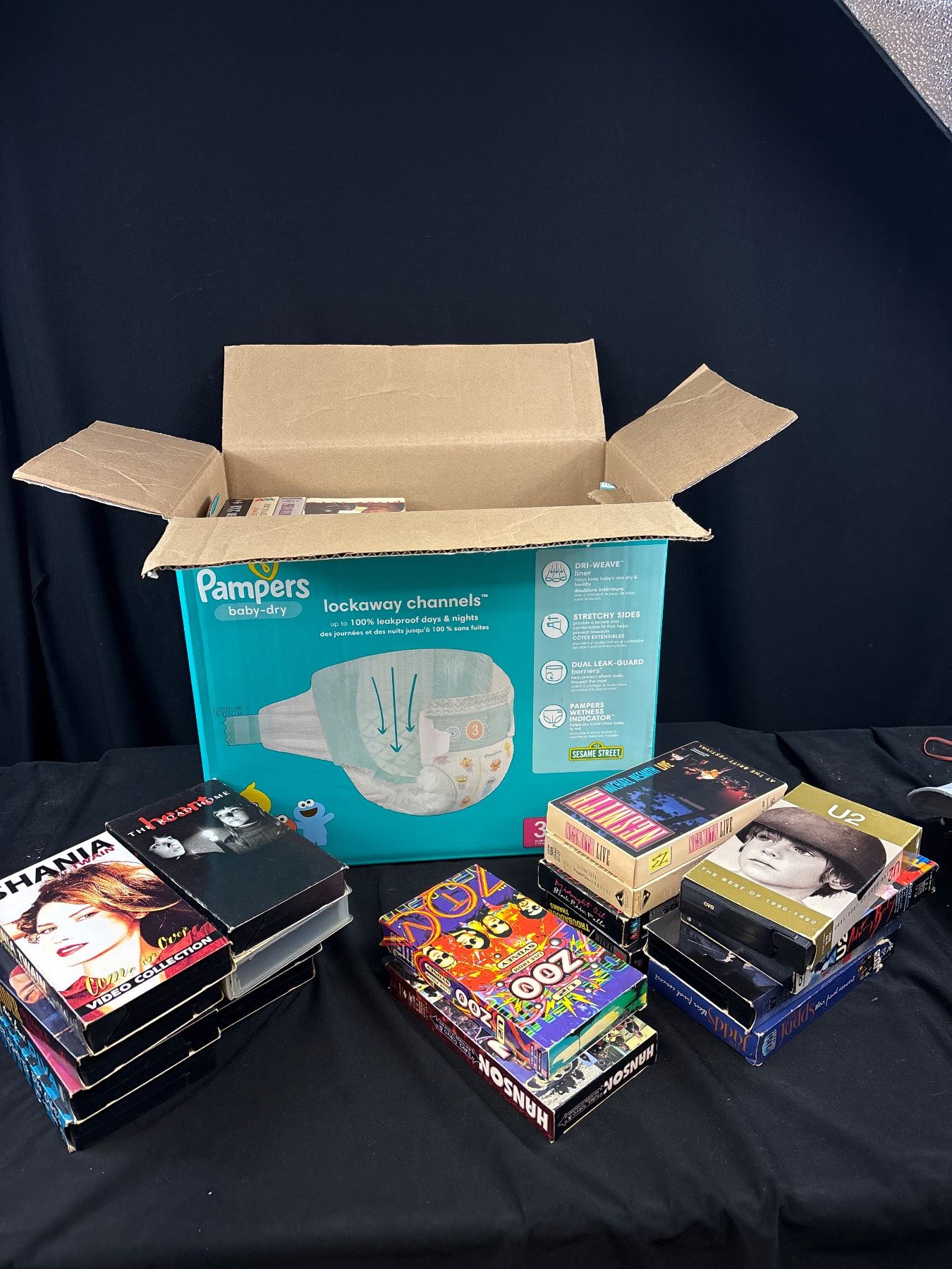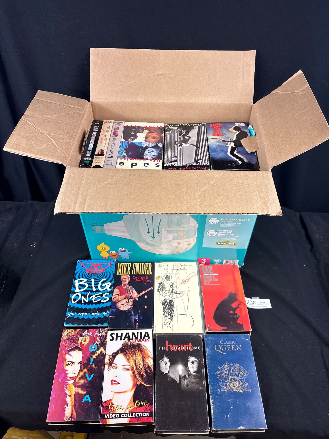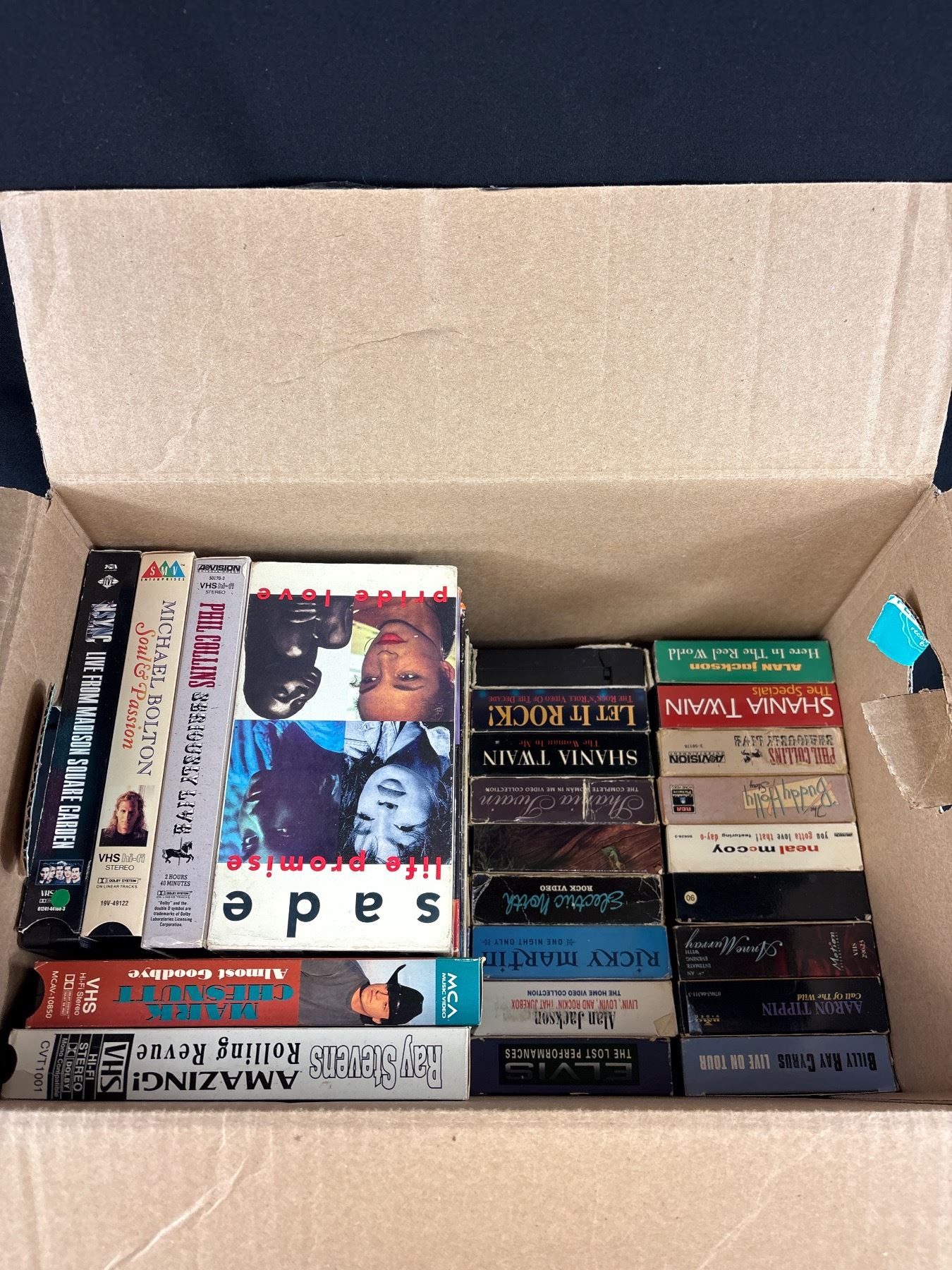Large Box of Vintage VHS Tapes Music and Movies