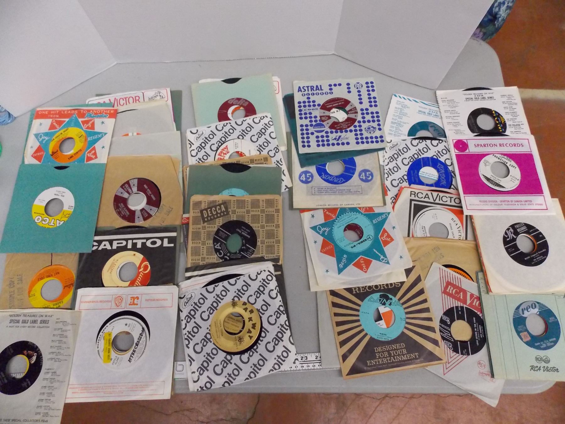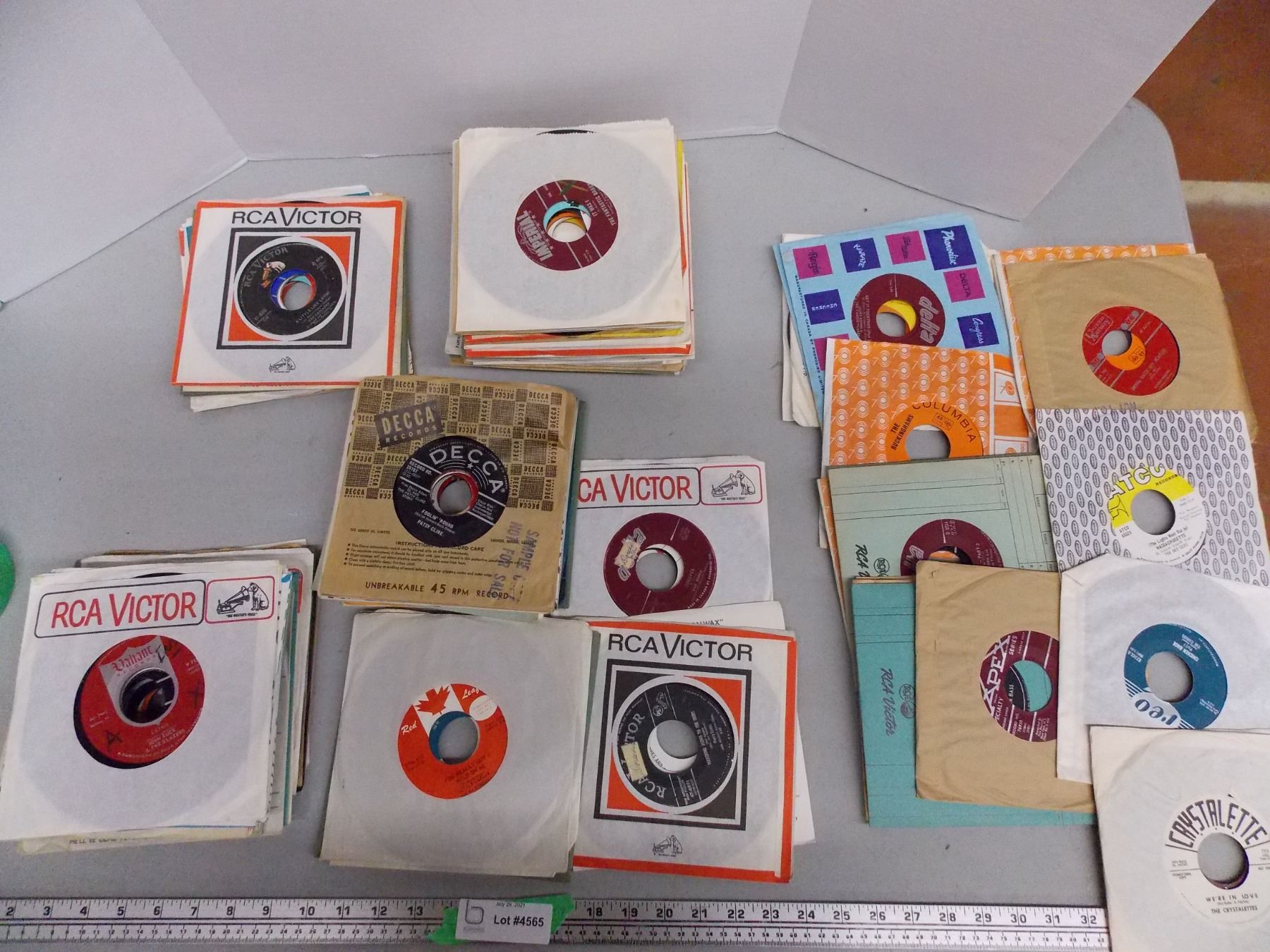Large Box of (approx 125) 45RPM Records - RCA Victor, WB, MGM, Columbia +++