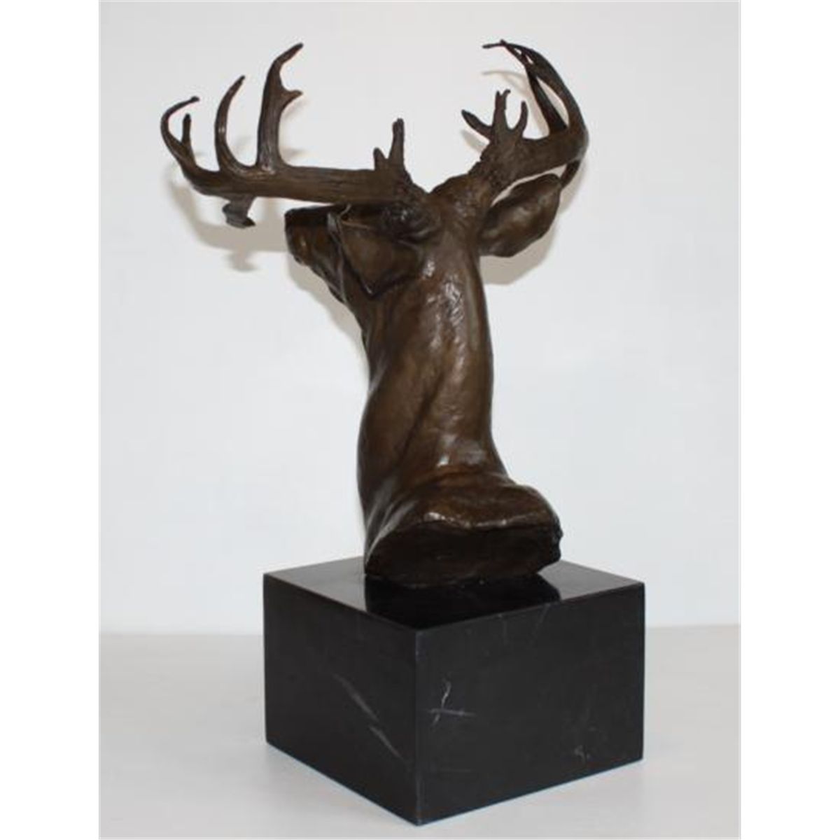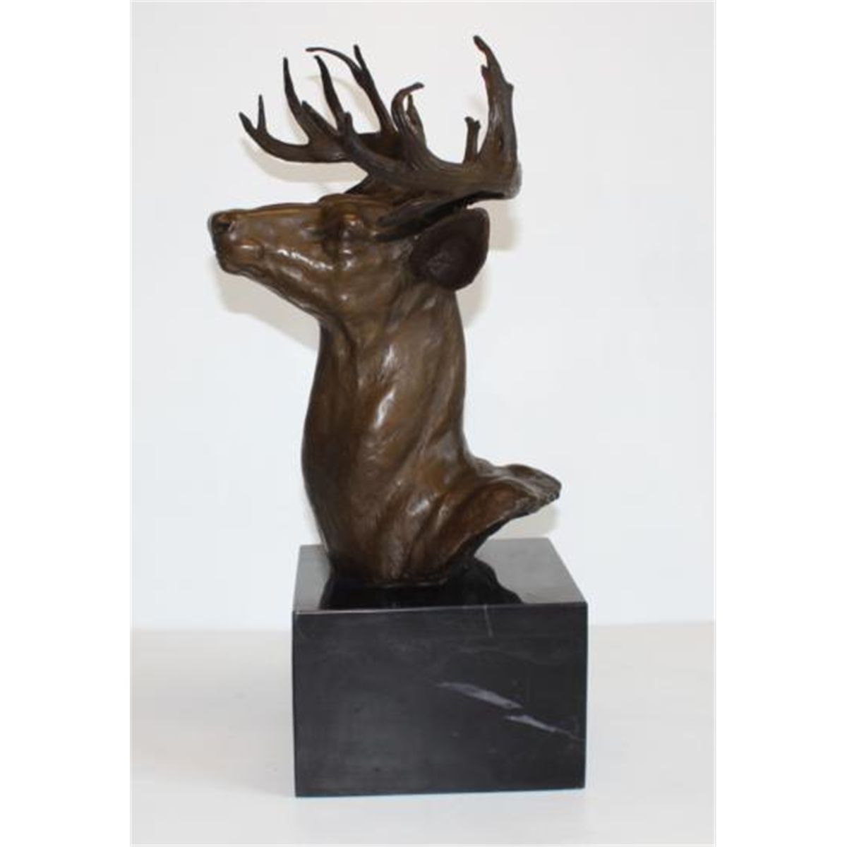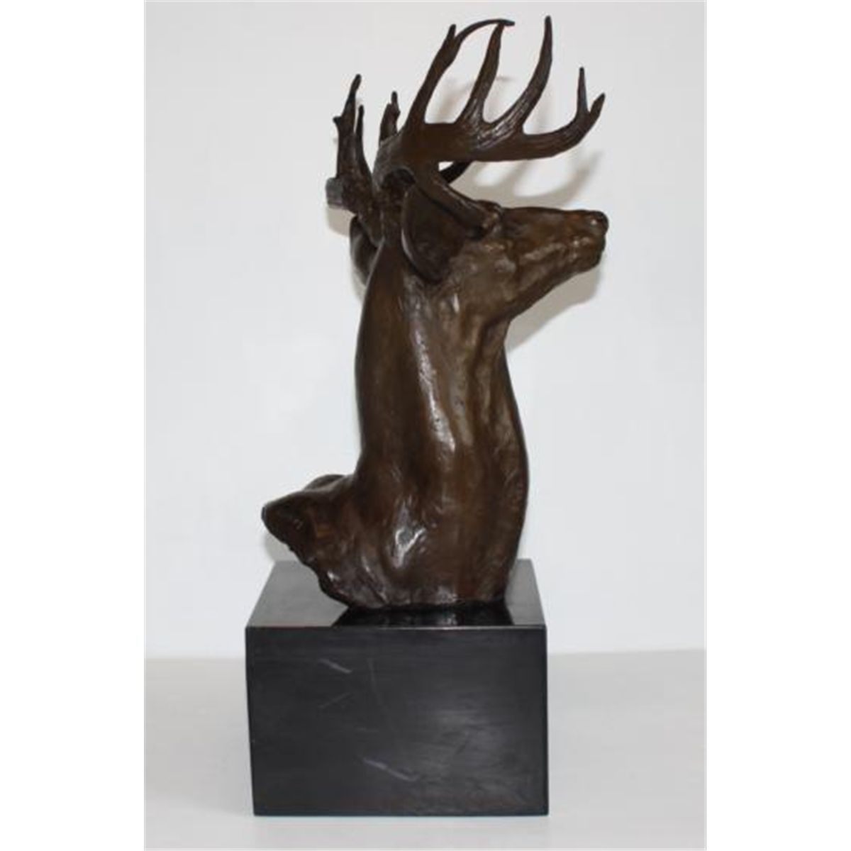 Elk Head Bronze Sculpture Bust, After Debvt, 17"H x 13"W x 8"D 25 lbs. This bronze sculpture was produced using the "Lost Wax" casting method. The"Lost Wax" Cast method is the most precise metal casting technique in existence, ensuring exquisite detail of the original host model which is usually sculpted in clay or wax. This "Lost Wax" casting method is an extremely labor intensive and expensive process, but the end results produce a Heirloom Quality Masterpiece!