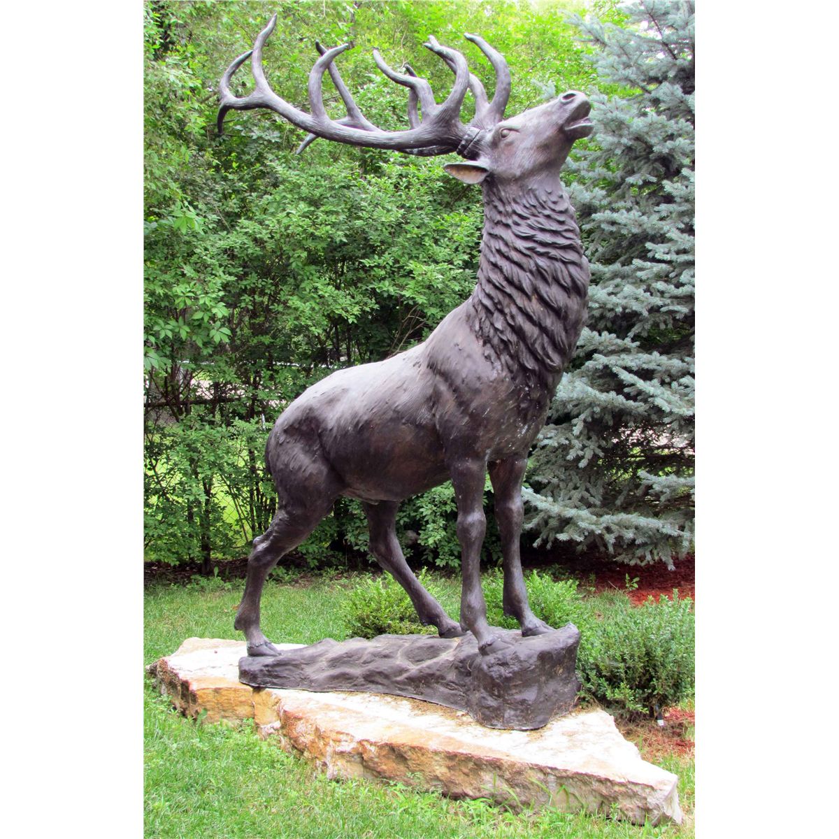 Beautiful Outdoor Elk bronze that will could grace the most presitgious lawn. 70 X 100 X 42 inches.