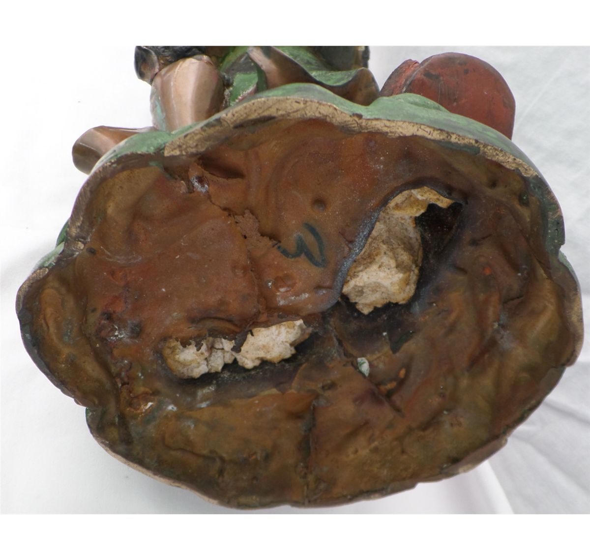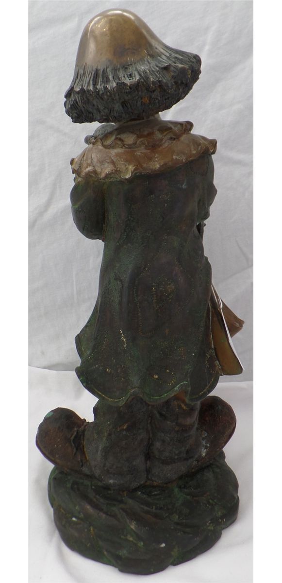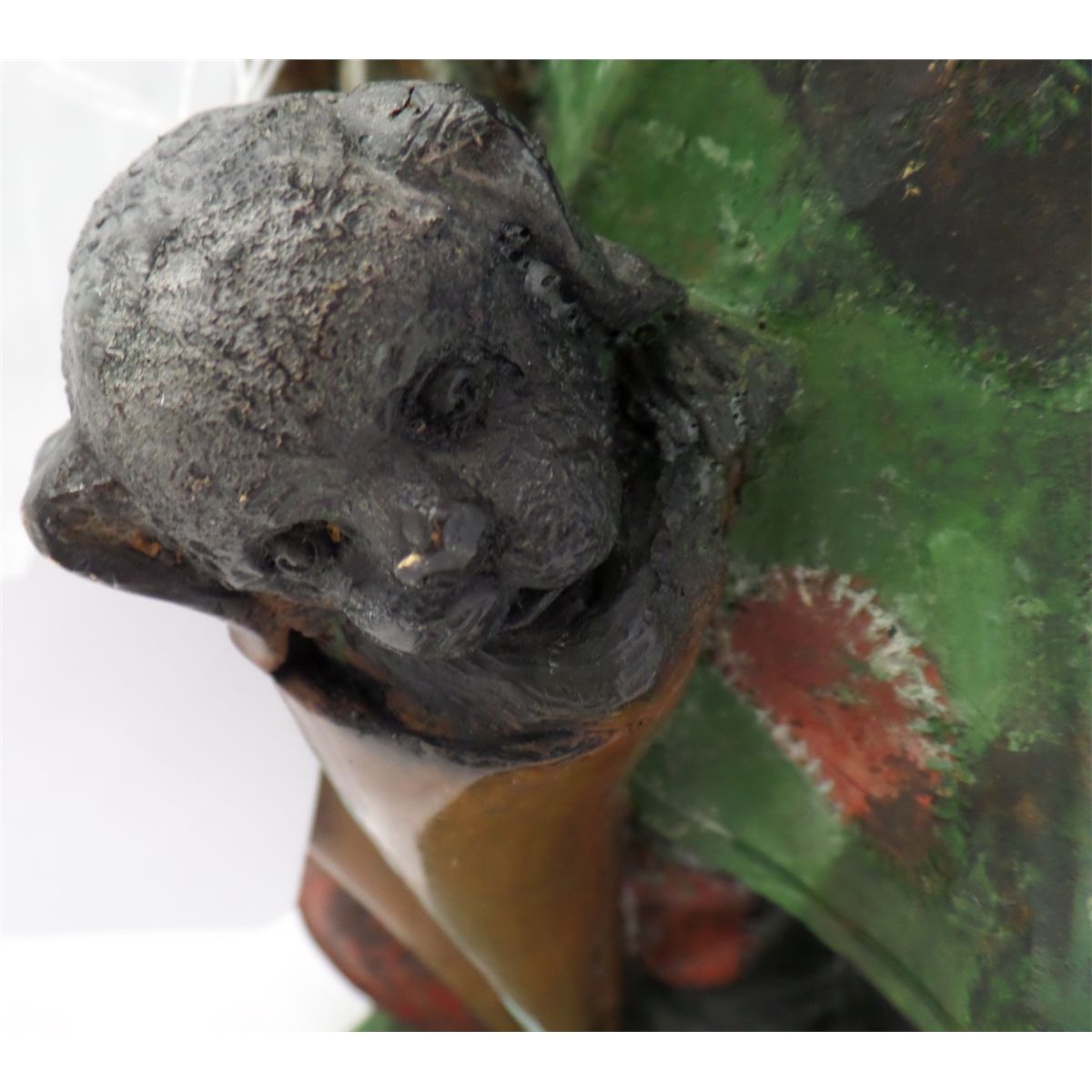 Large Bronze Figure of Clown with 2 Puppies. Item measures 18" x 8.5" x 7.25" and weighs 21 lbs. Painted Bronze. Condition: Some paint loss. Shipping: $24.