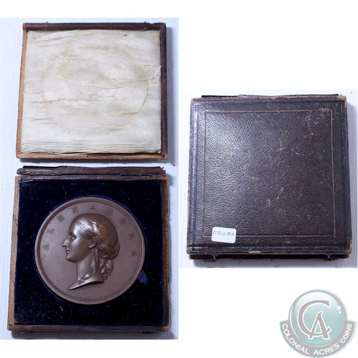 Comes in original brown display box but is tattered (broken hinges) and the medal has toning on it with diameter 77mm.