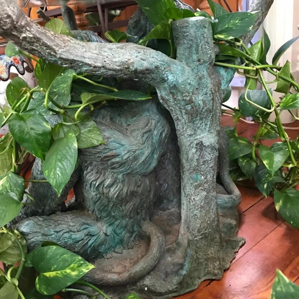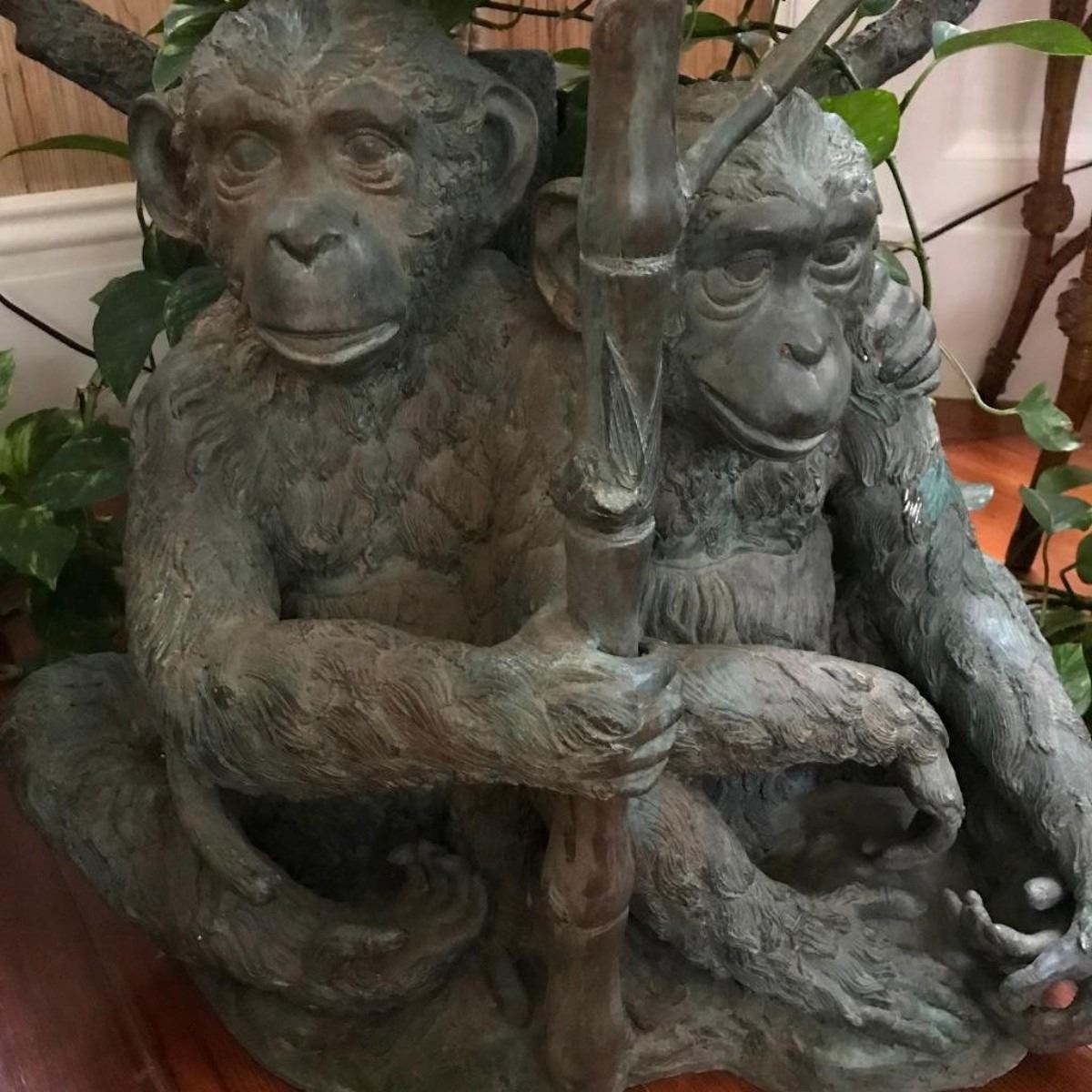 Large size bronze monkey, chimpanzee couple, figural conservatory coffee or side table. Bronze with green patina. 21" H X 25" W X 20" D.